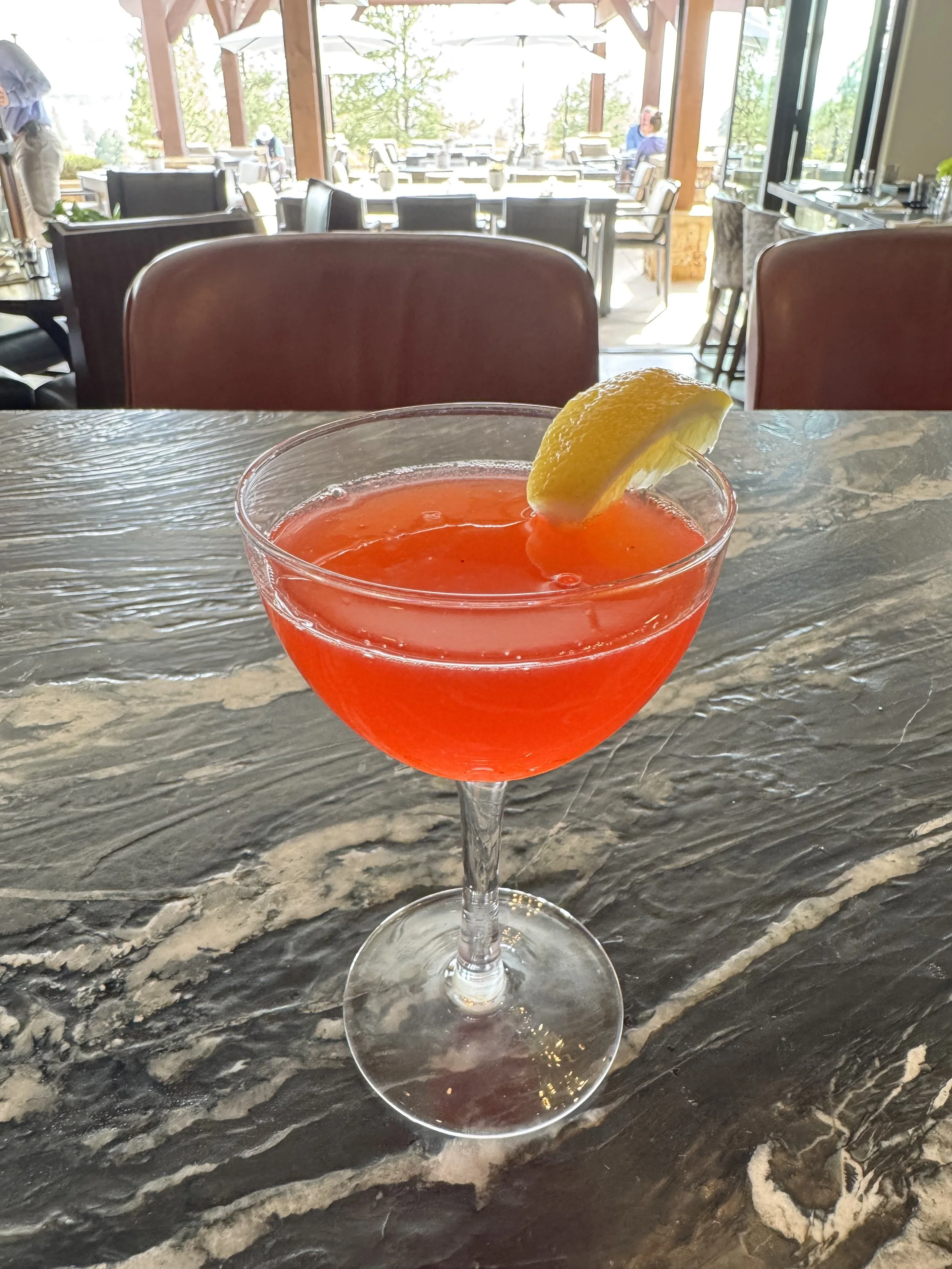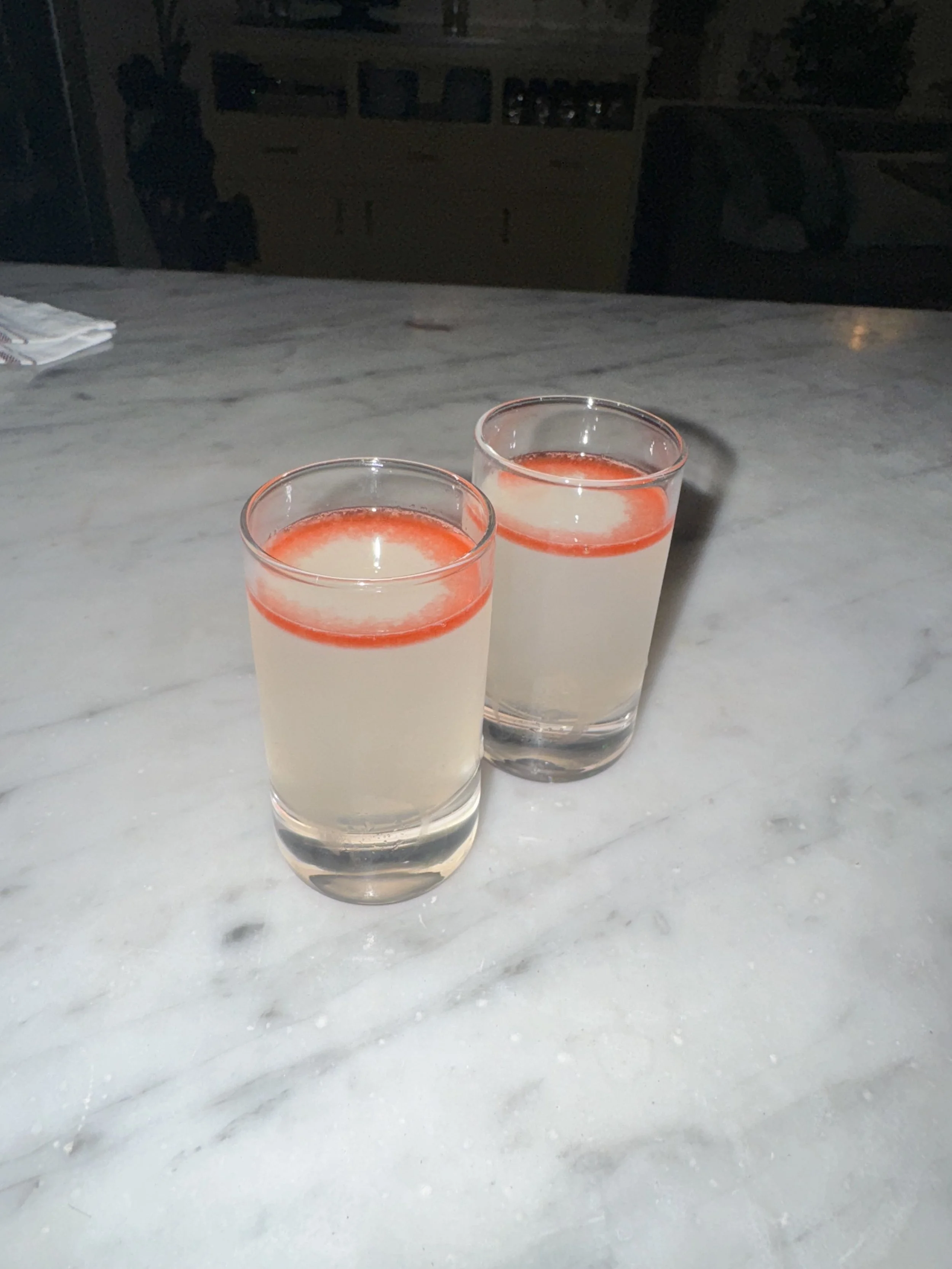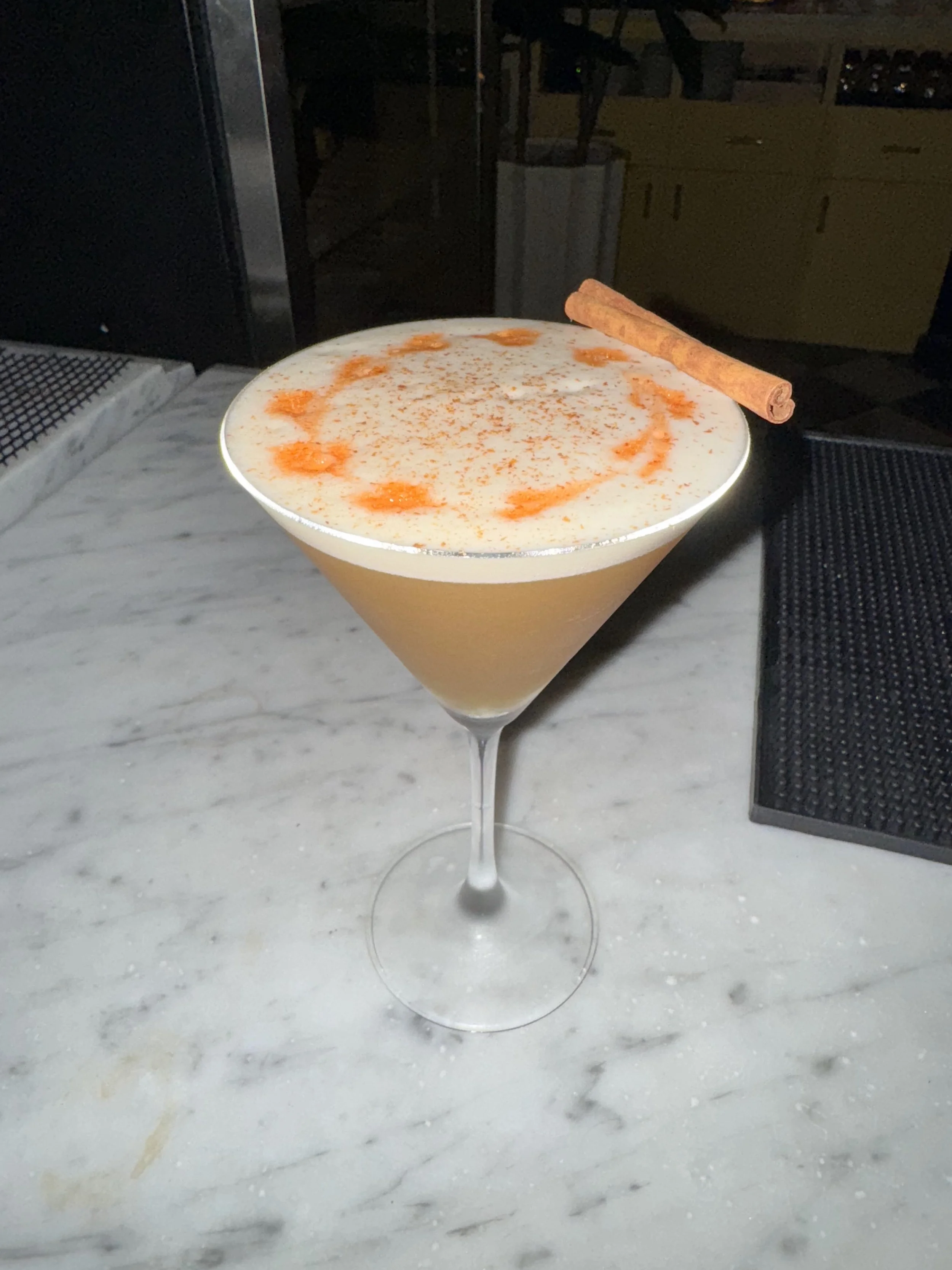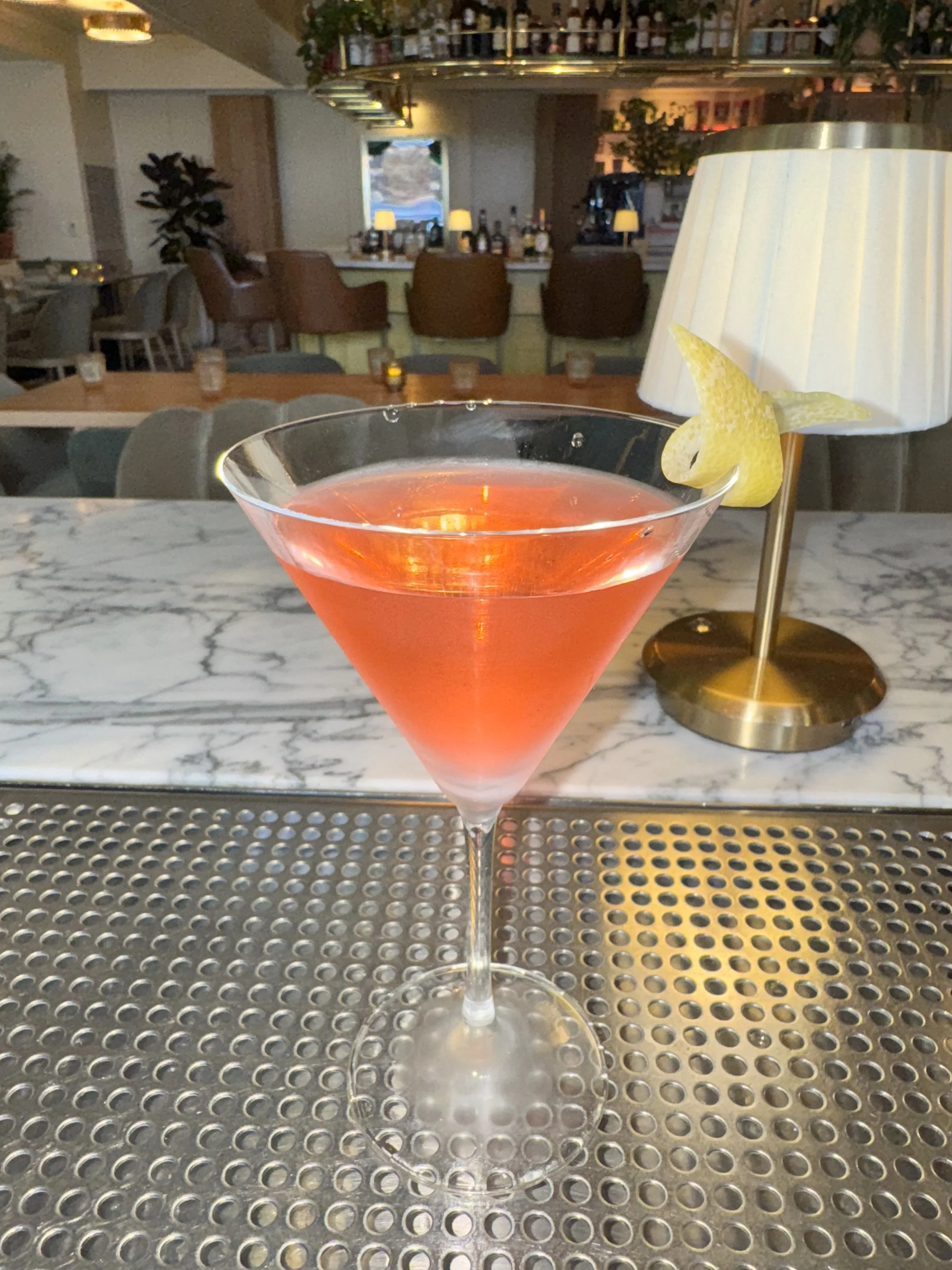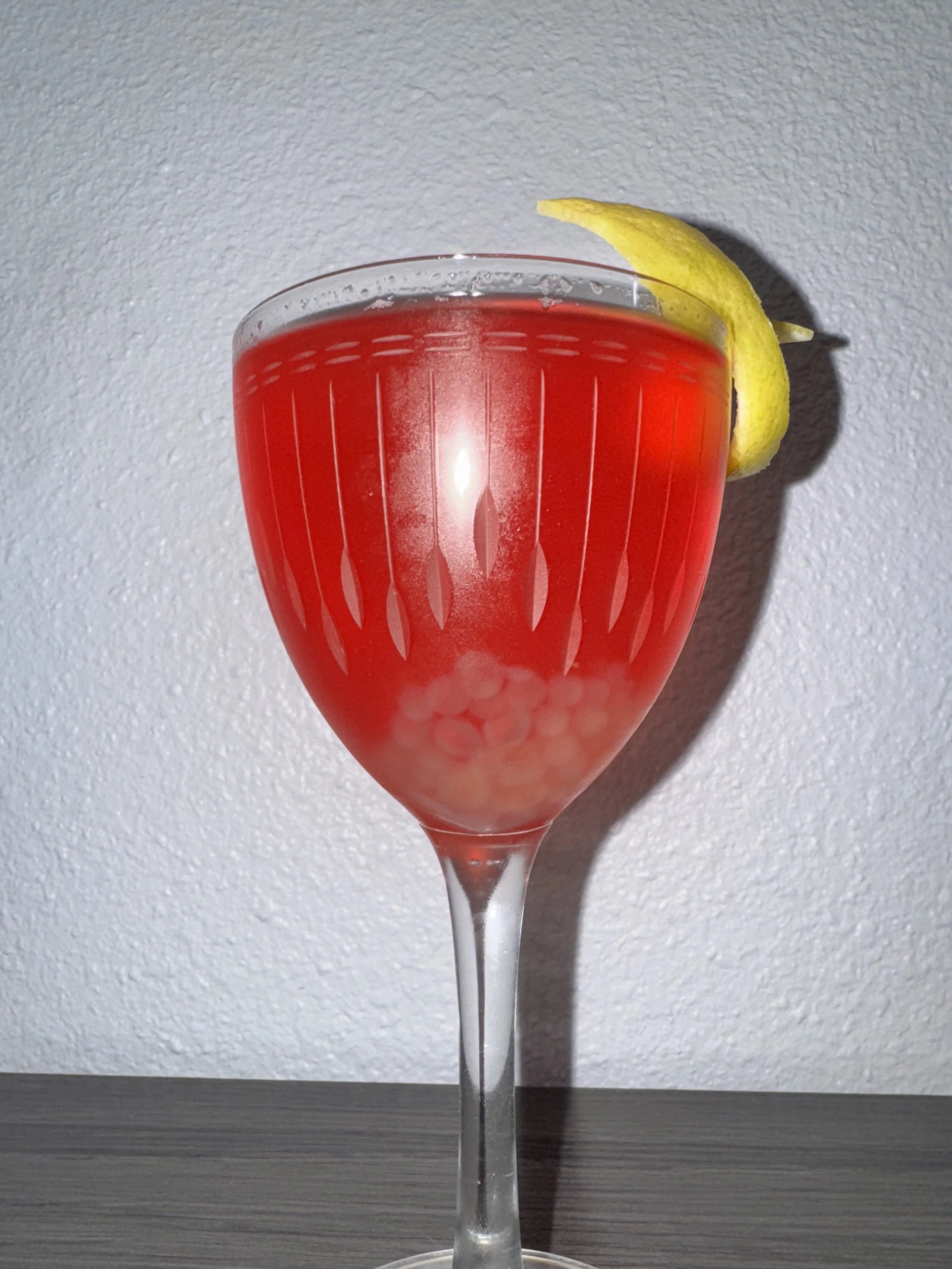 Milk Punch Cranberry Martini w/ Rhubarb Caviar