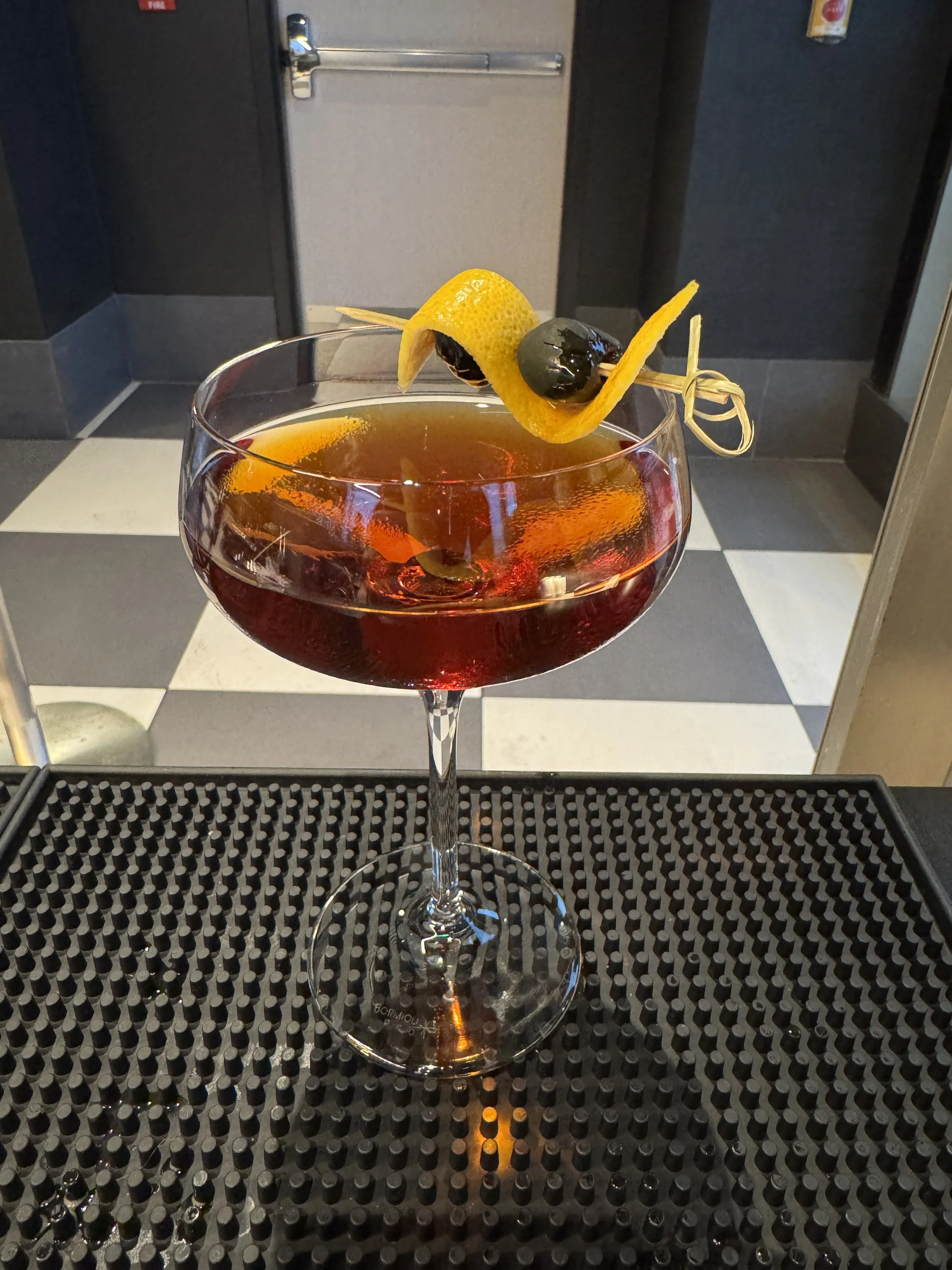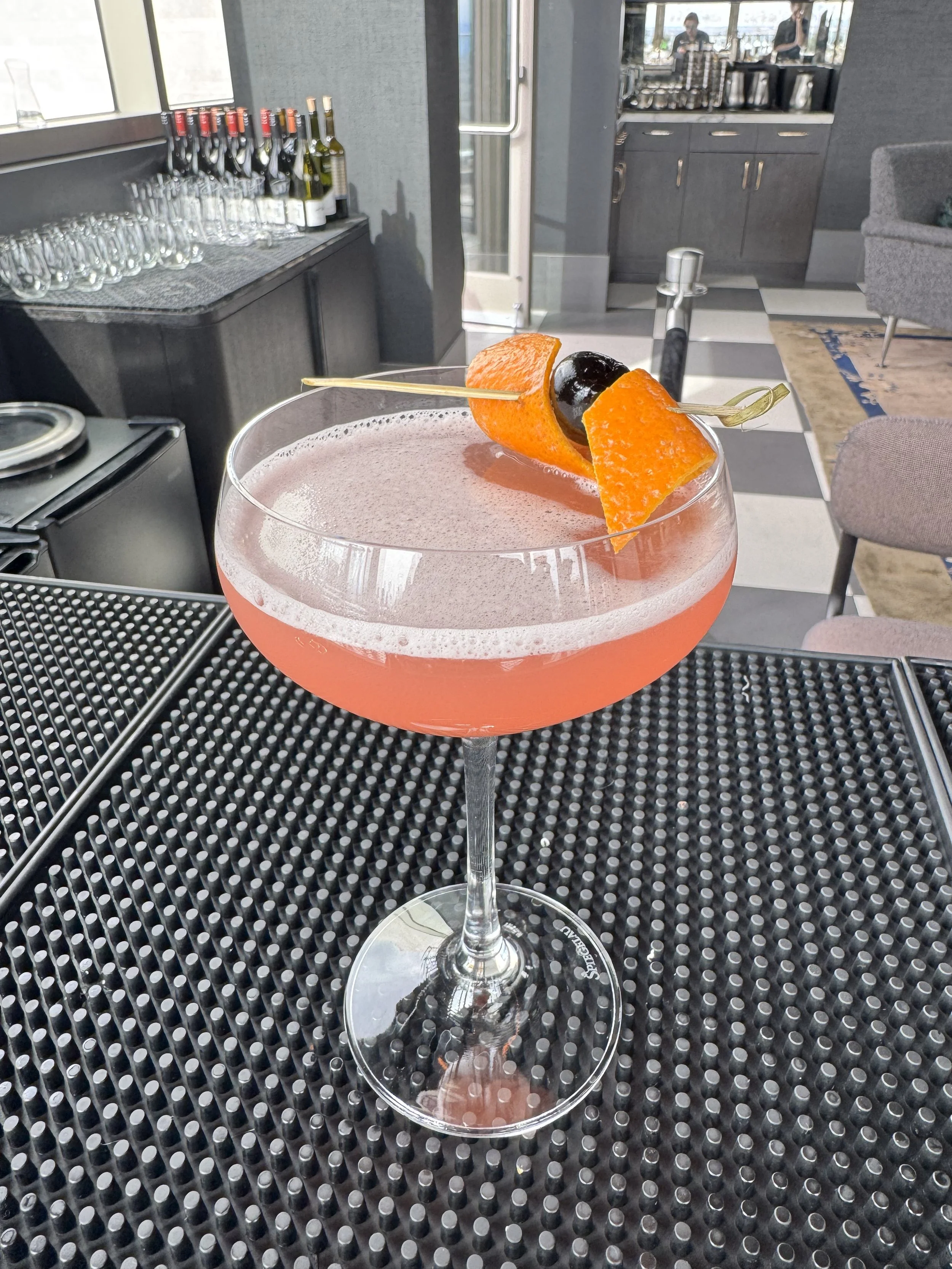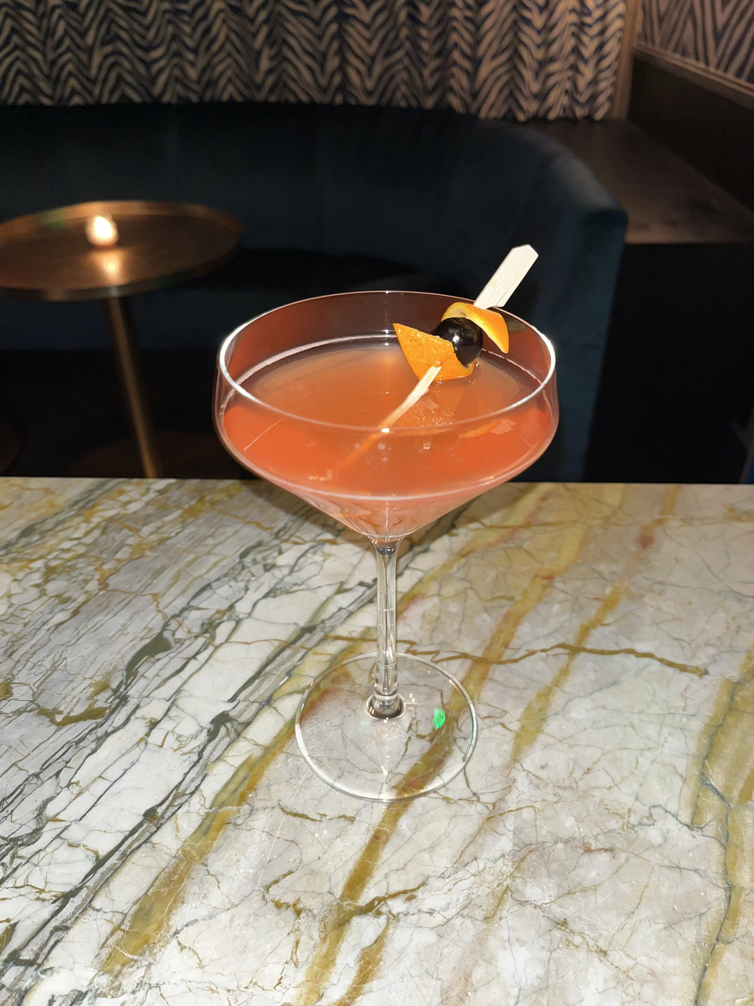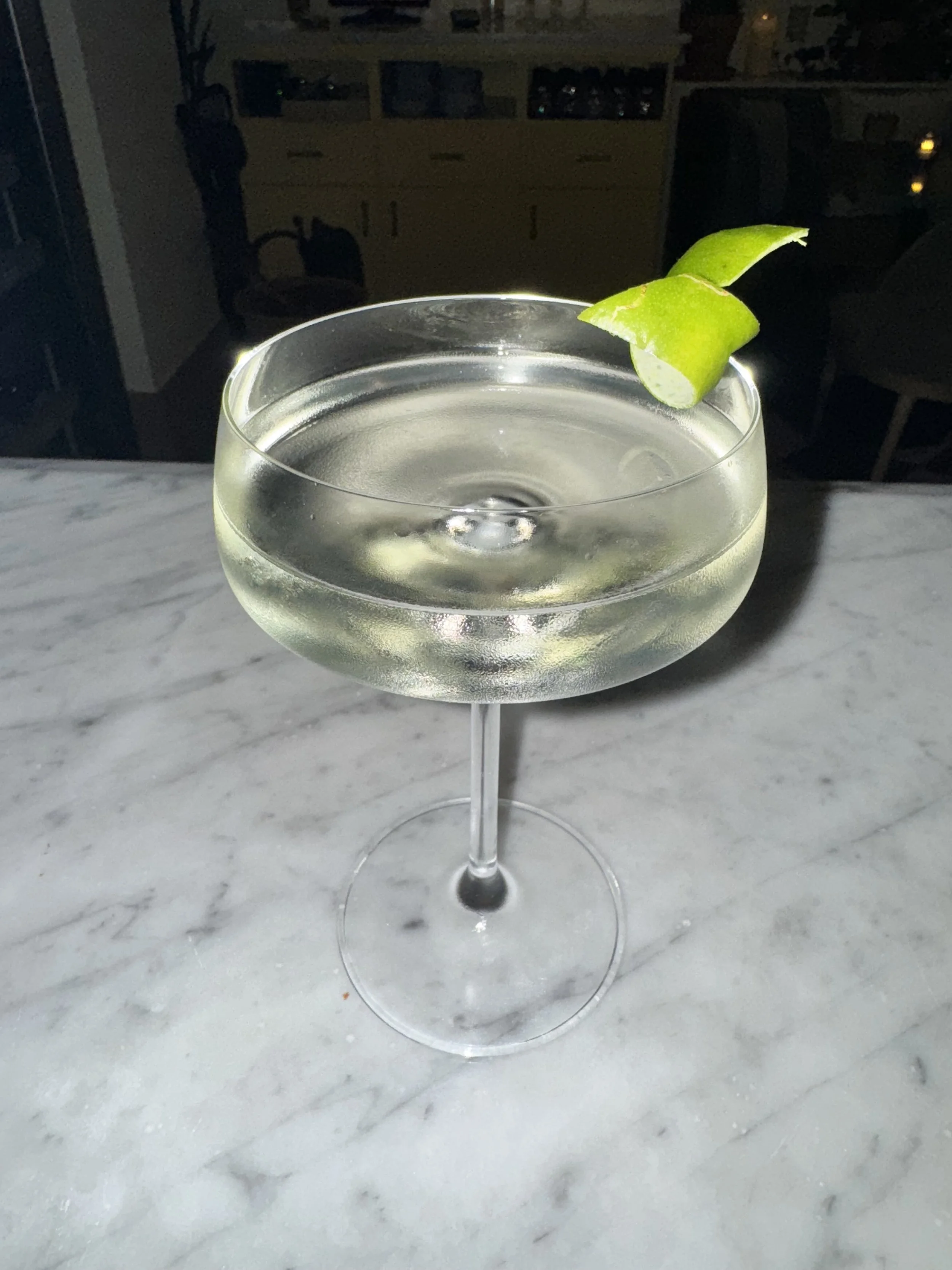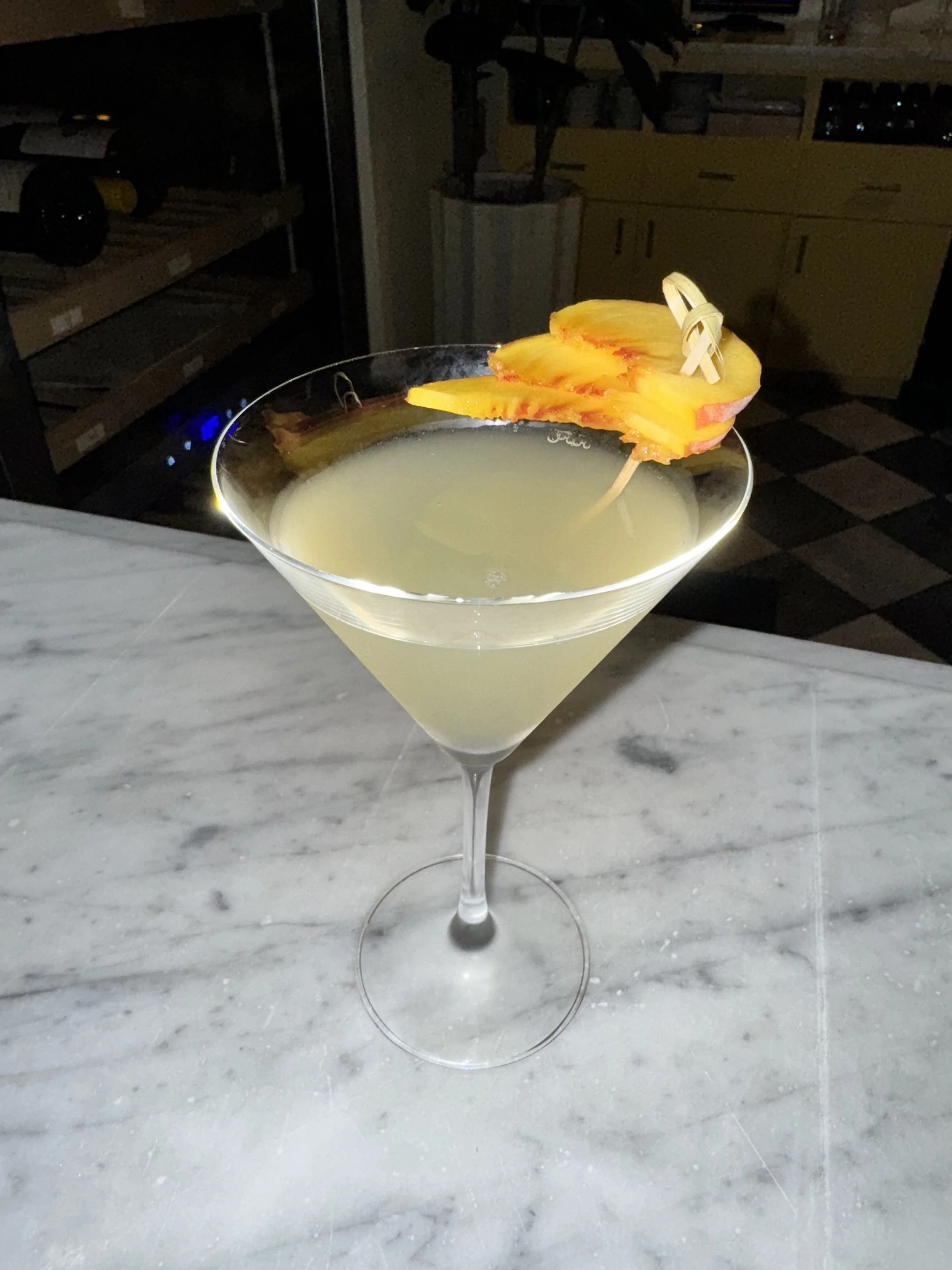Milk Punch Cranberry Martini w/ Rhubarb Caviar