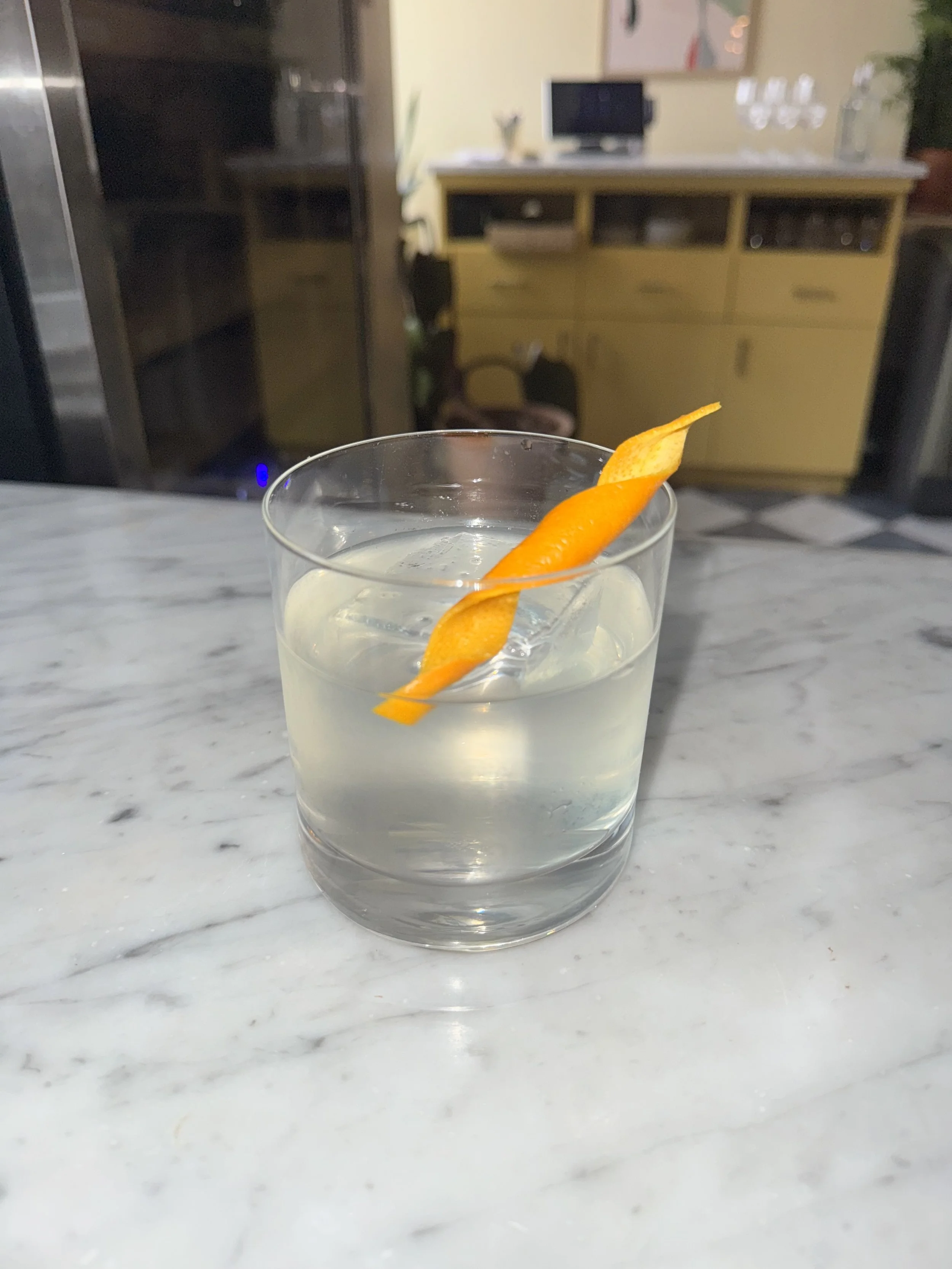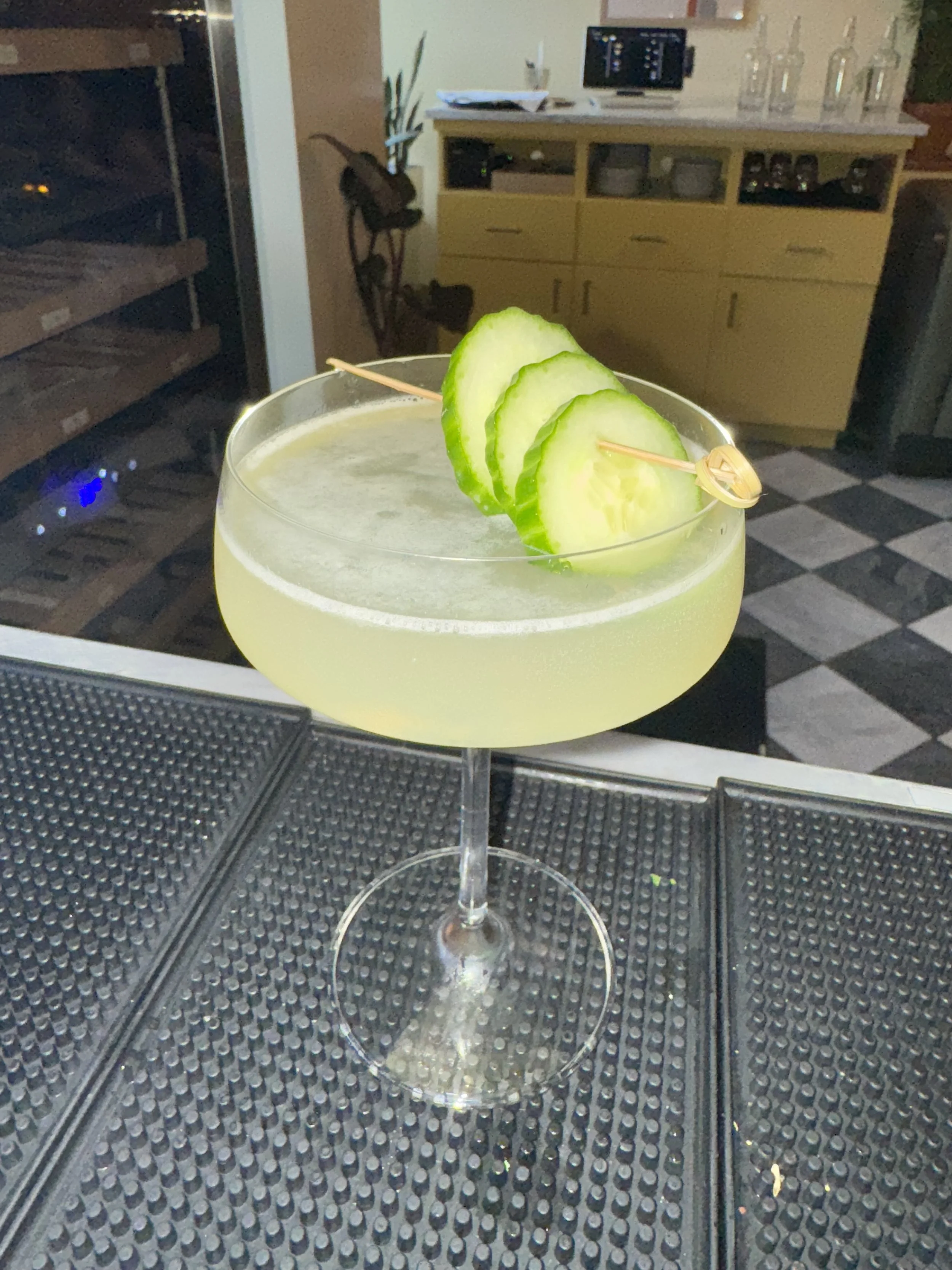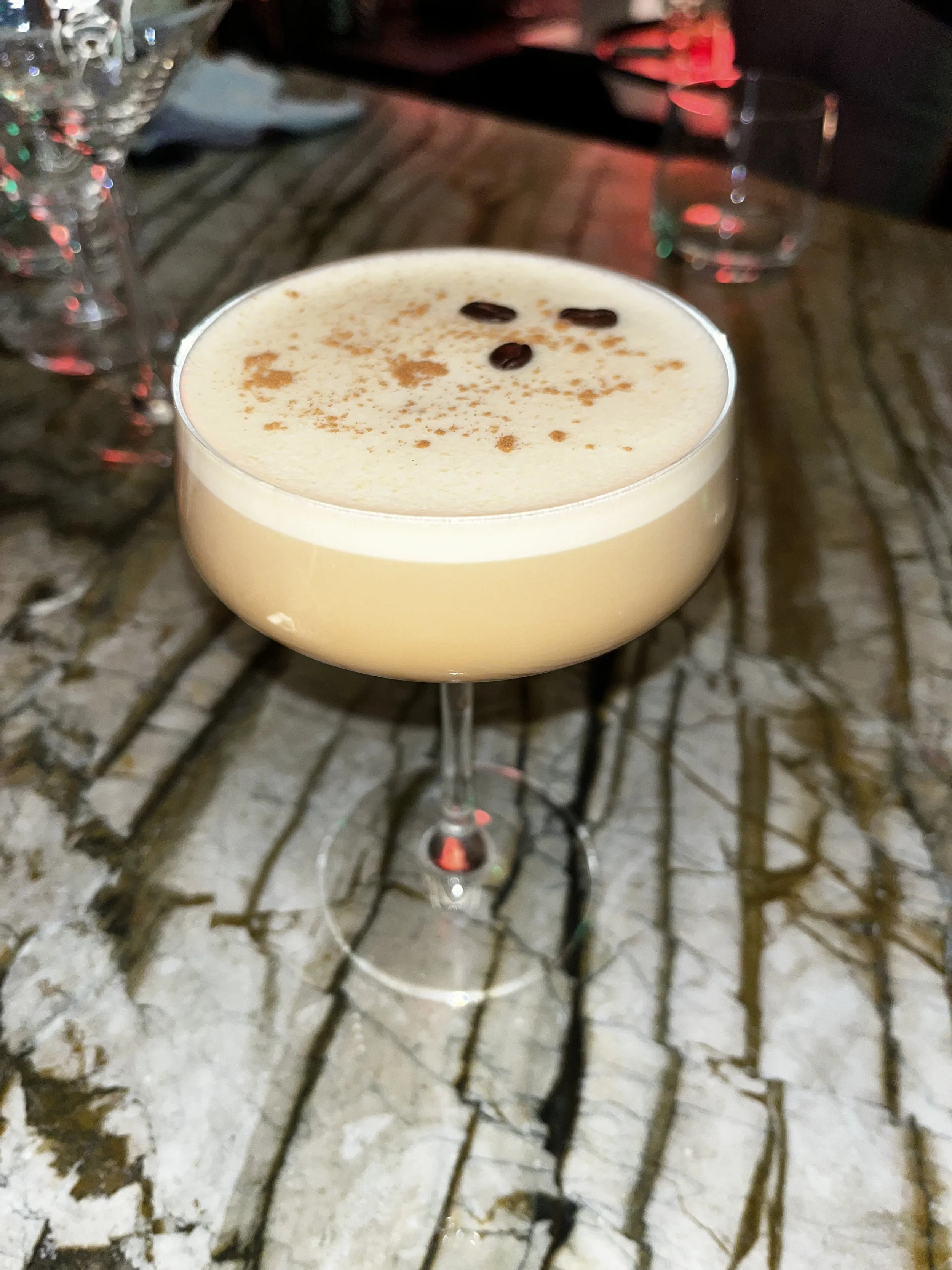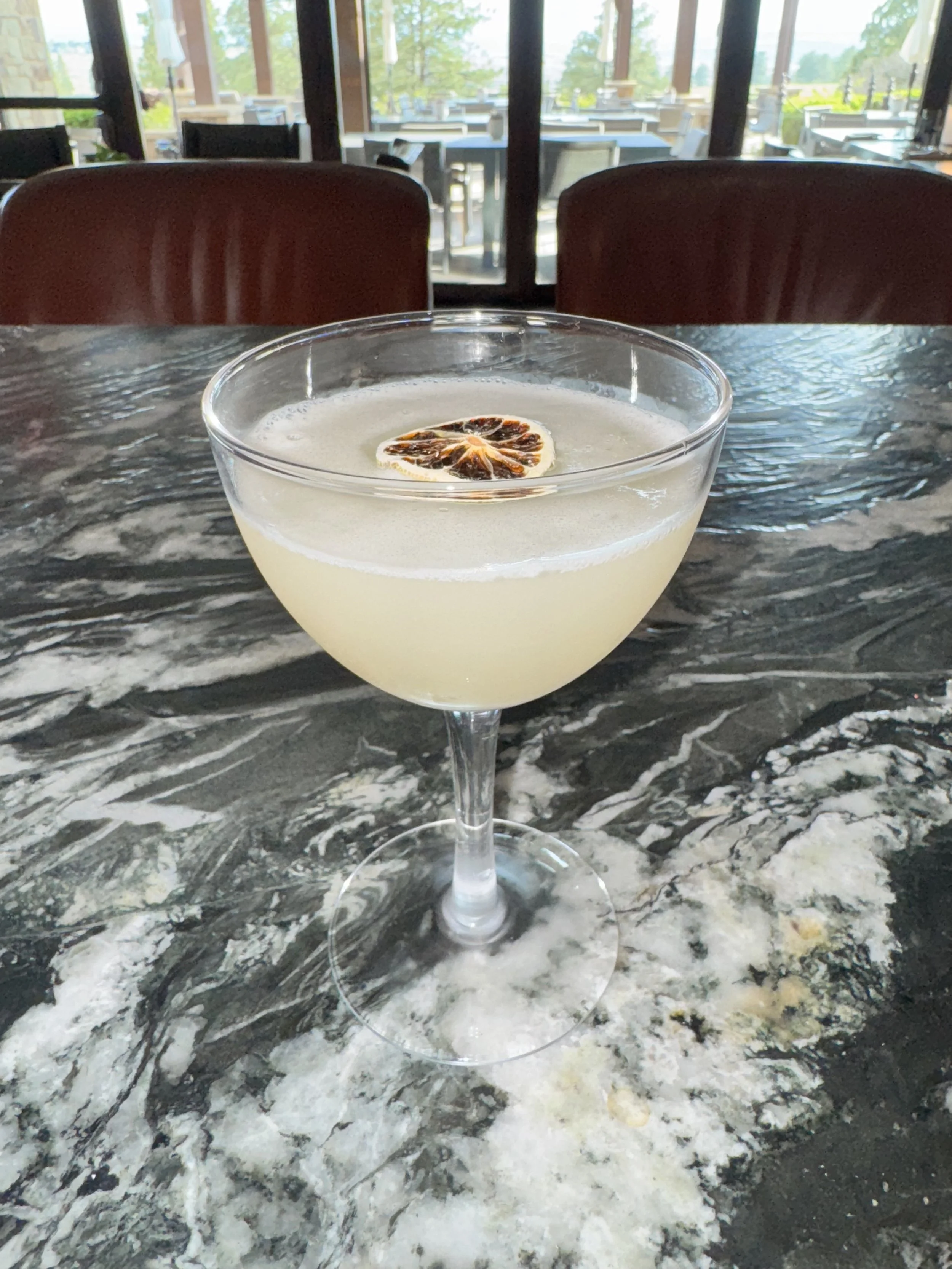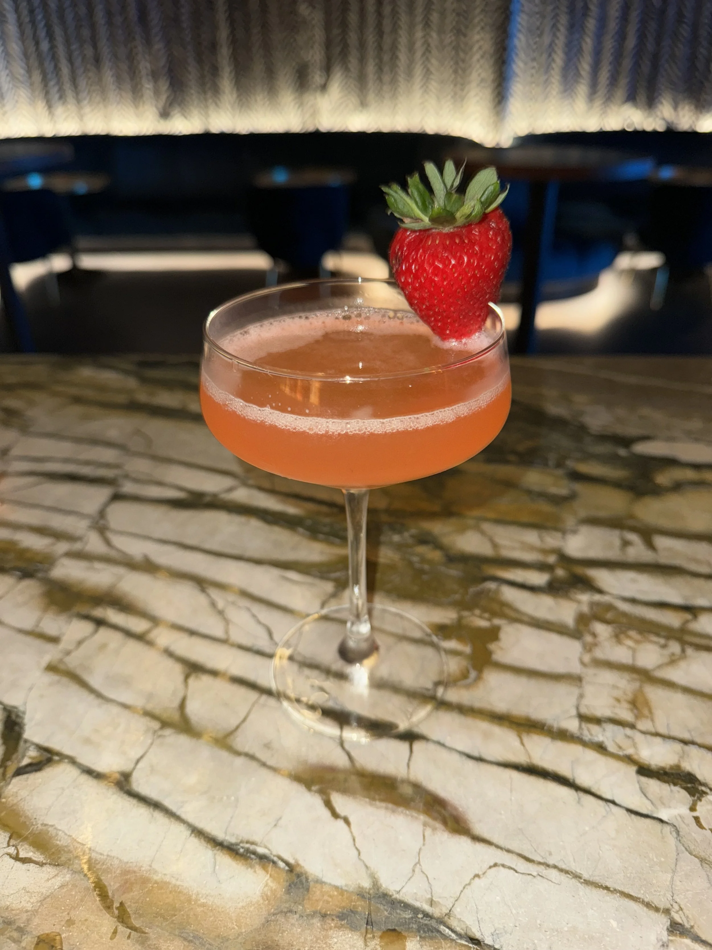 Milk Punch Cranberry Martini w/ Rhubarb Caviar