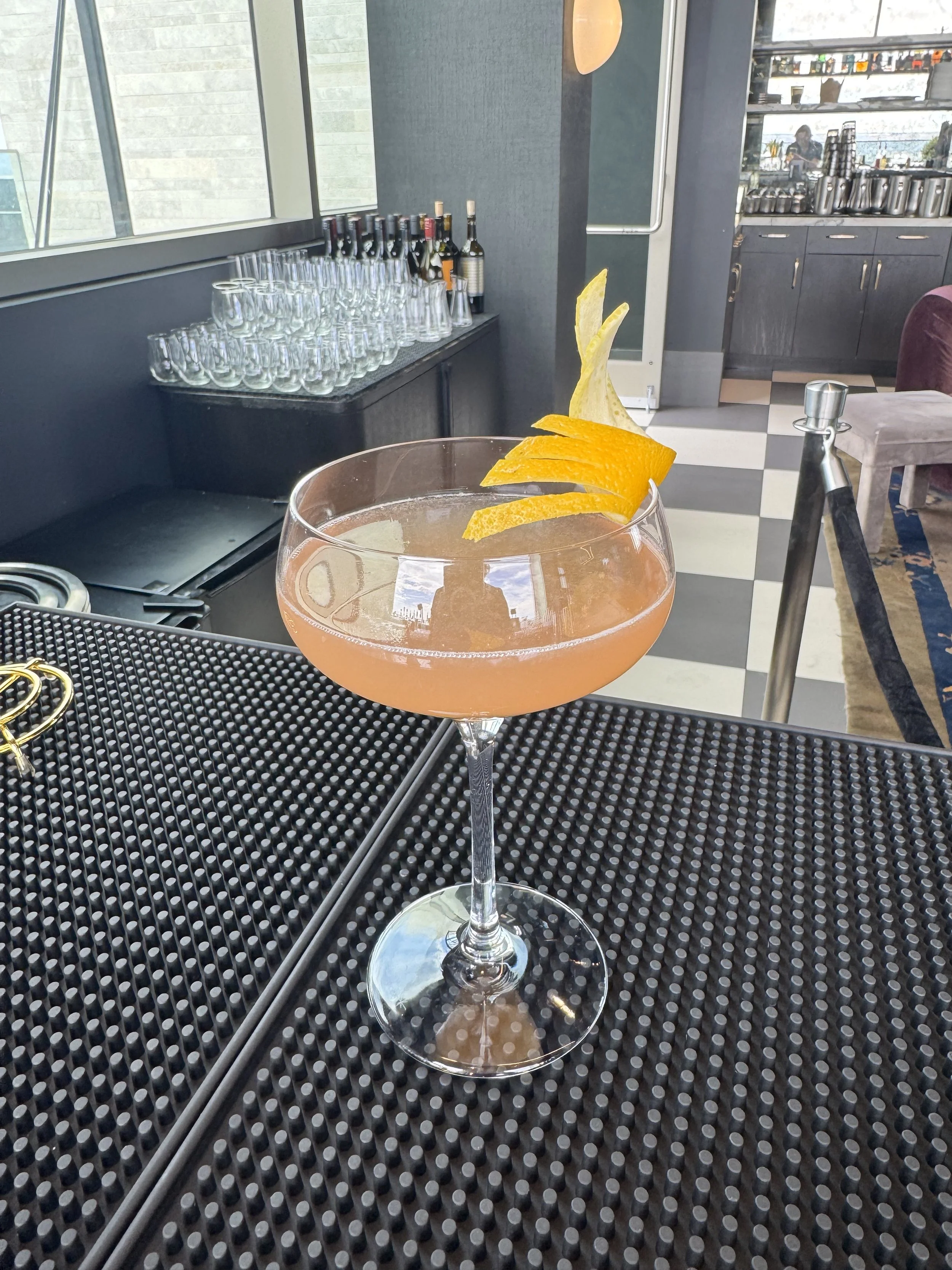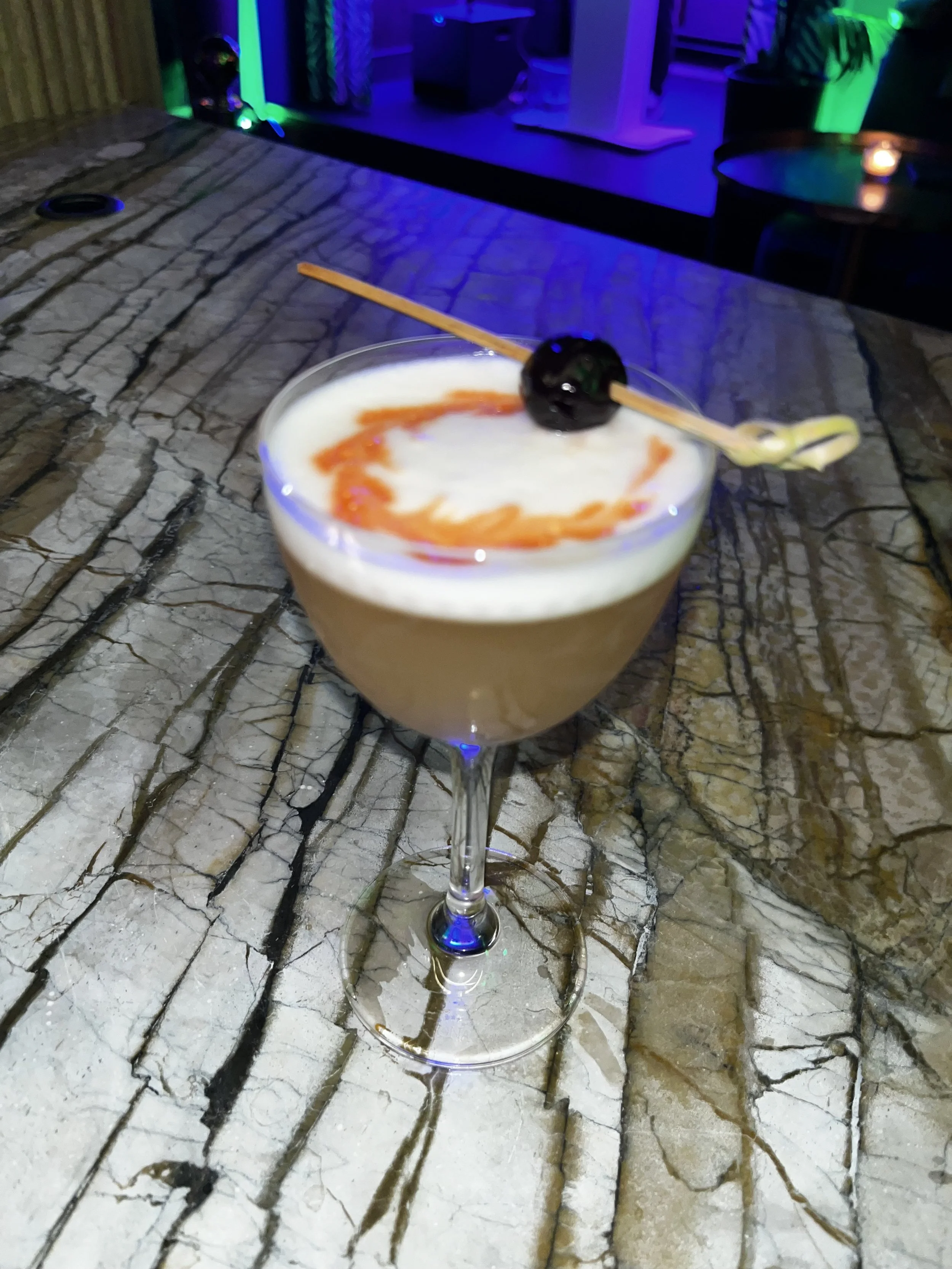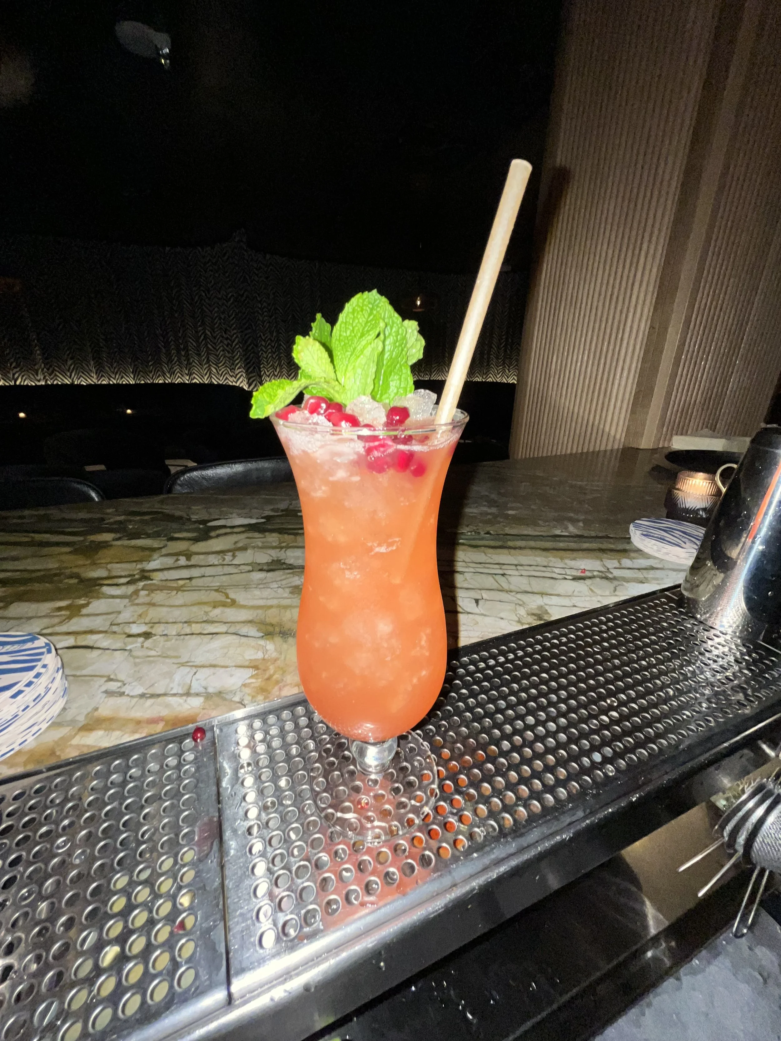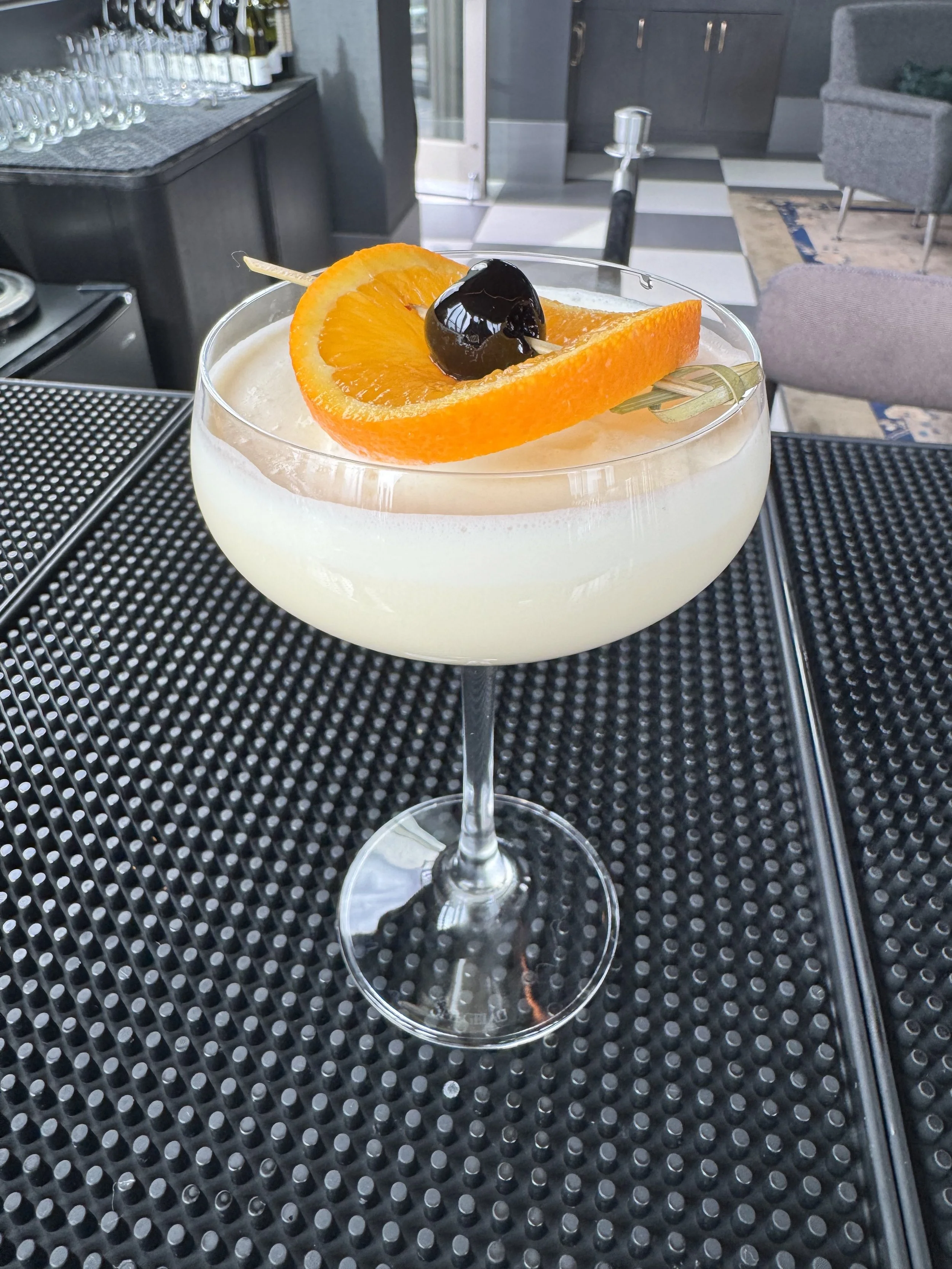 Milk Punch Cranberry Martini w/ Rhubarb Caviar