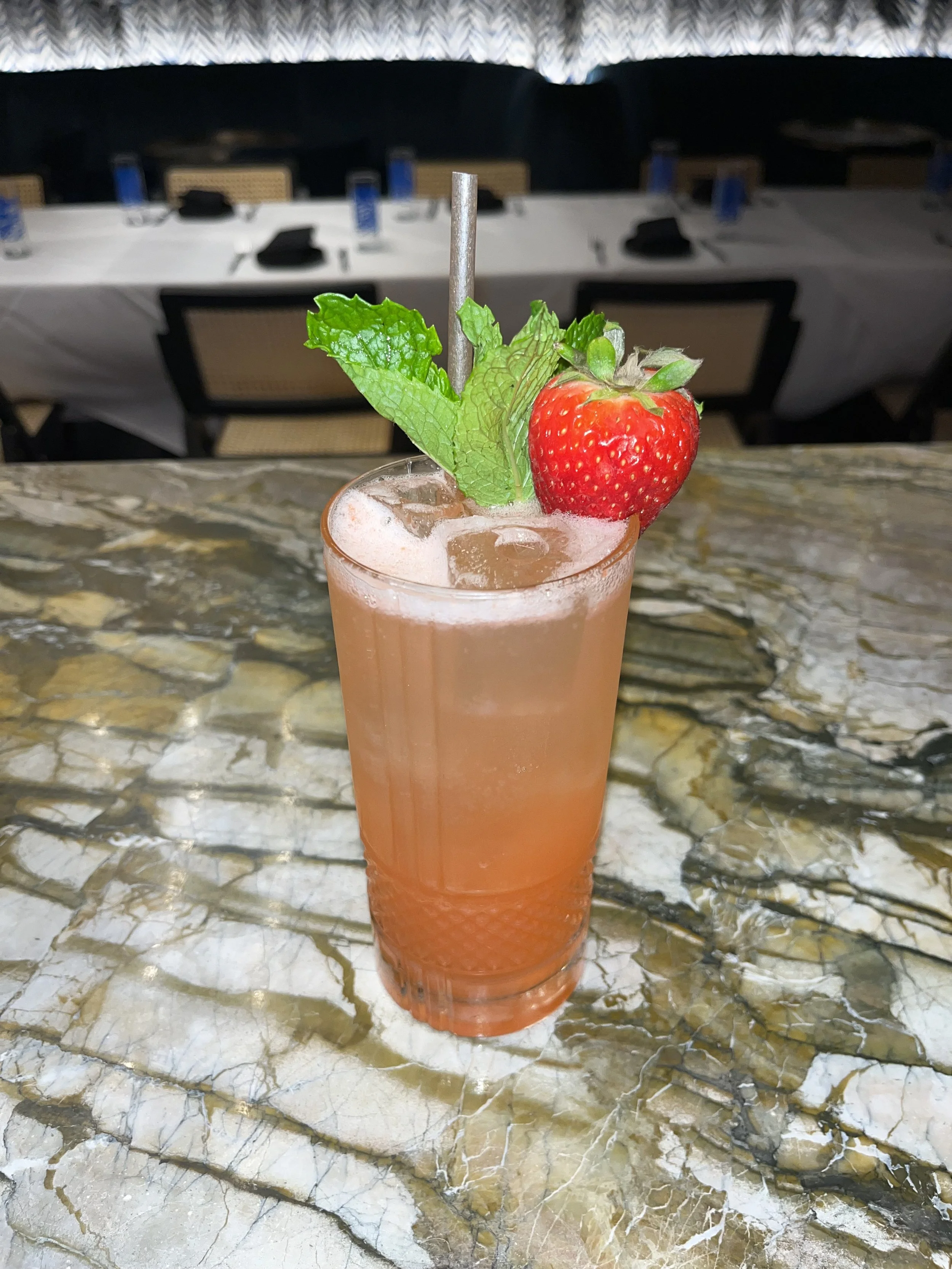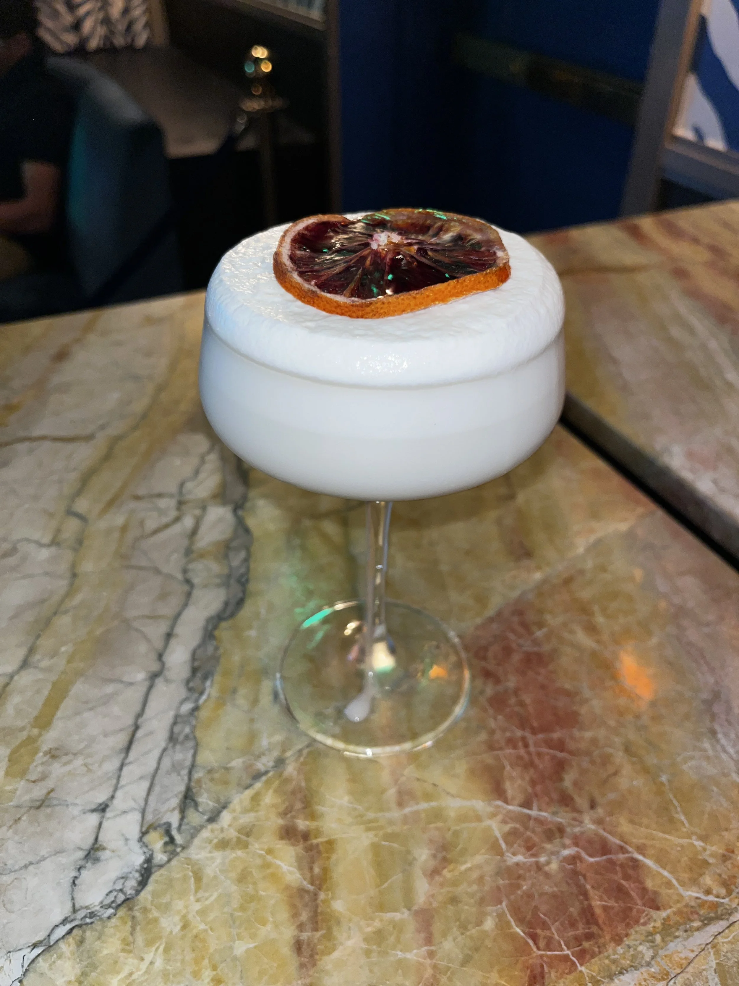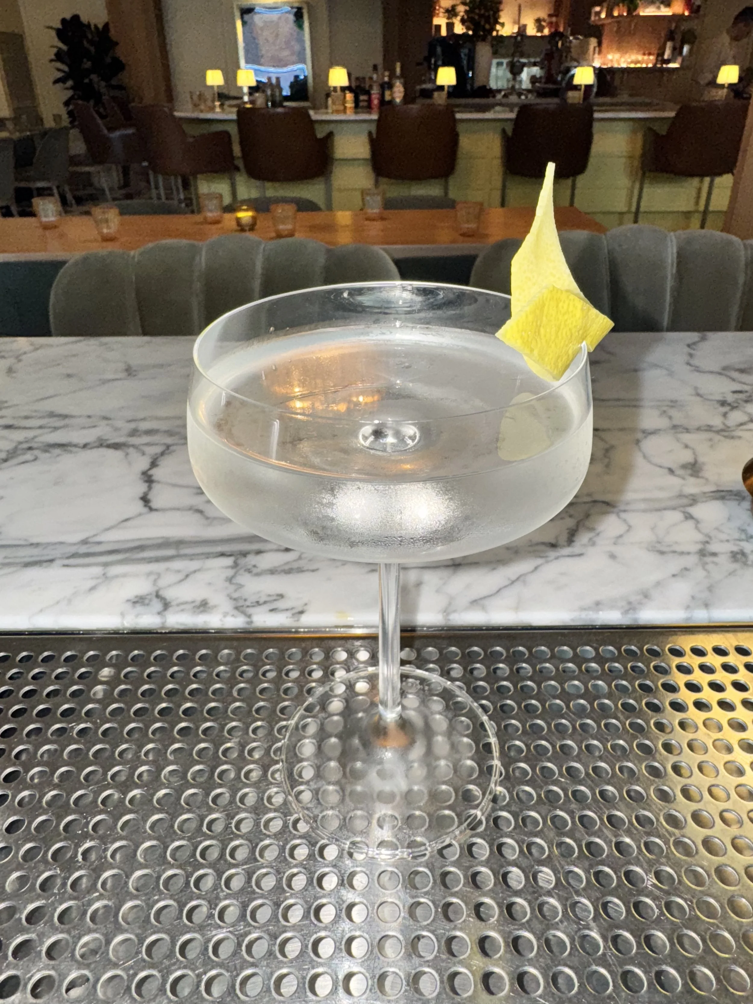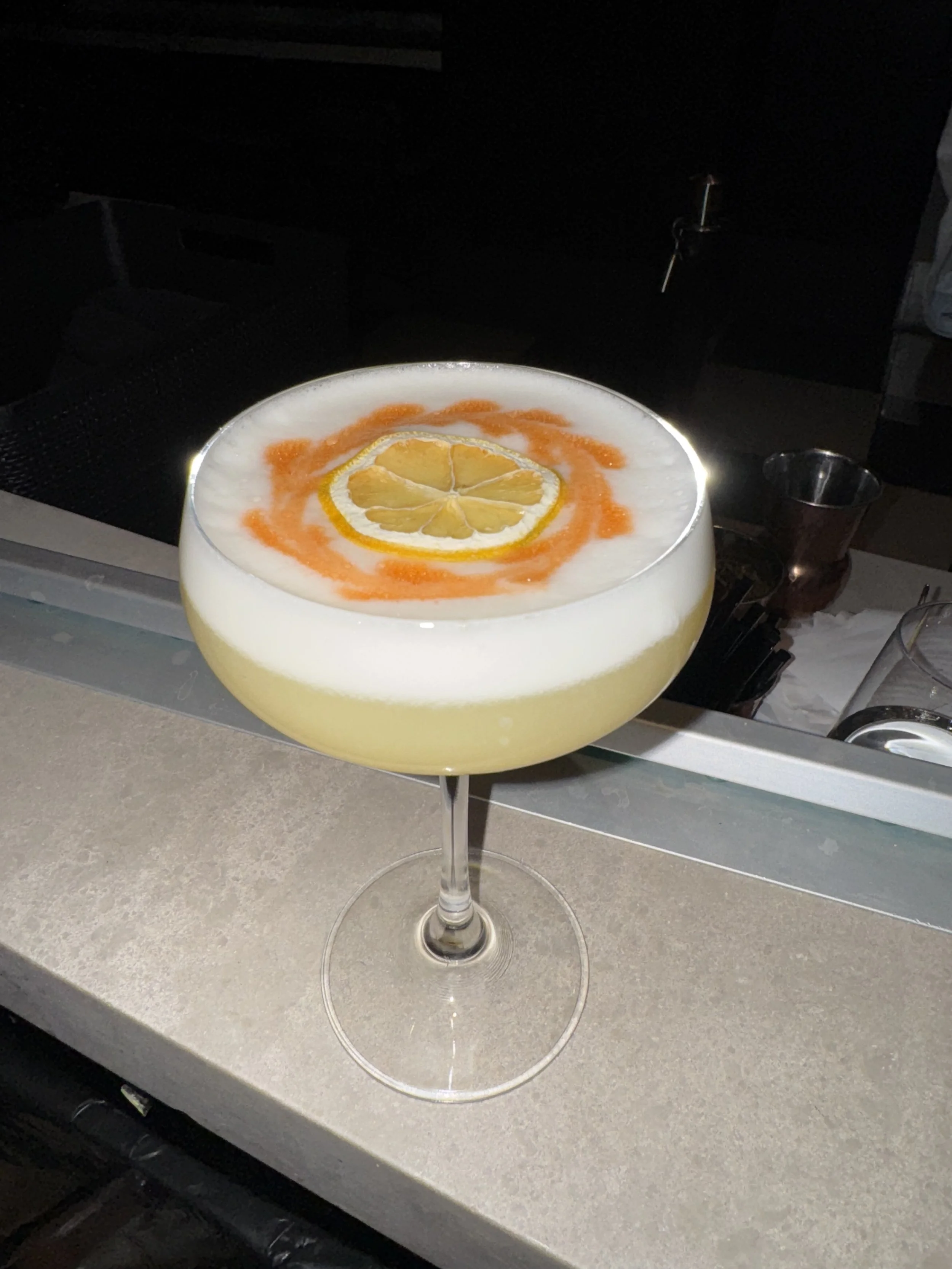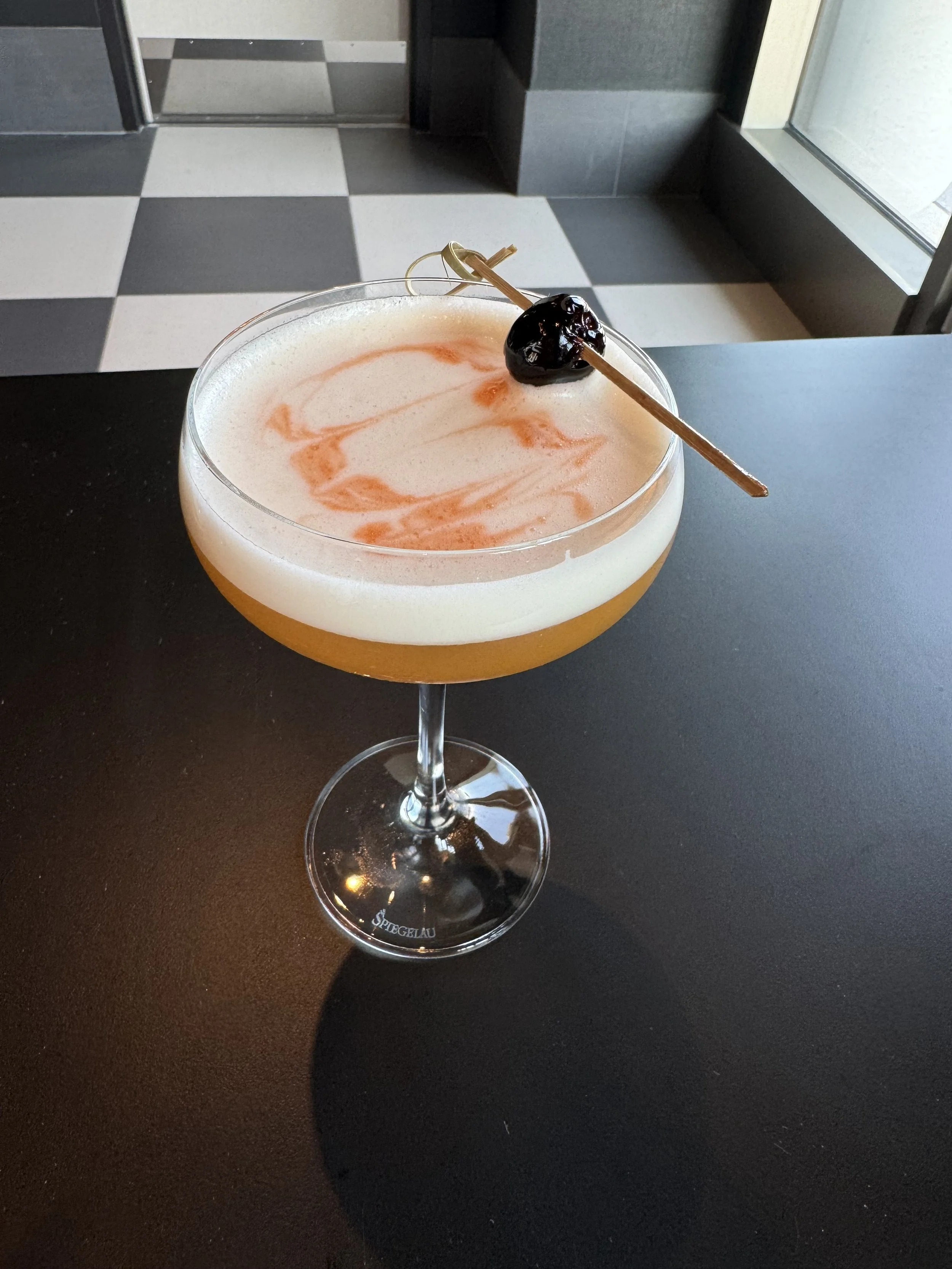 Milk Punch Cranberry Martini w/ Rhubarb Caviar