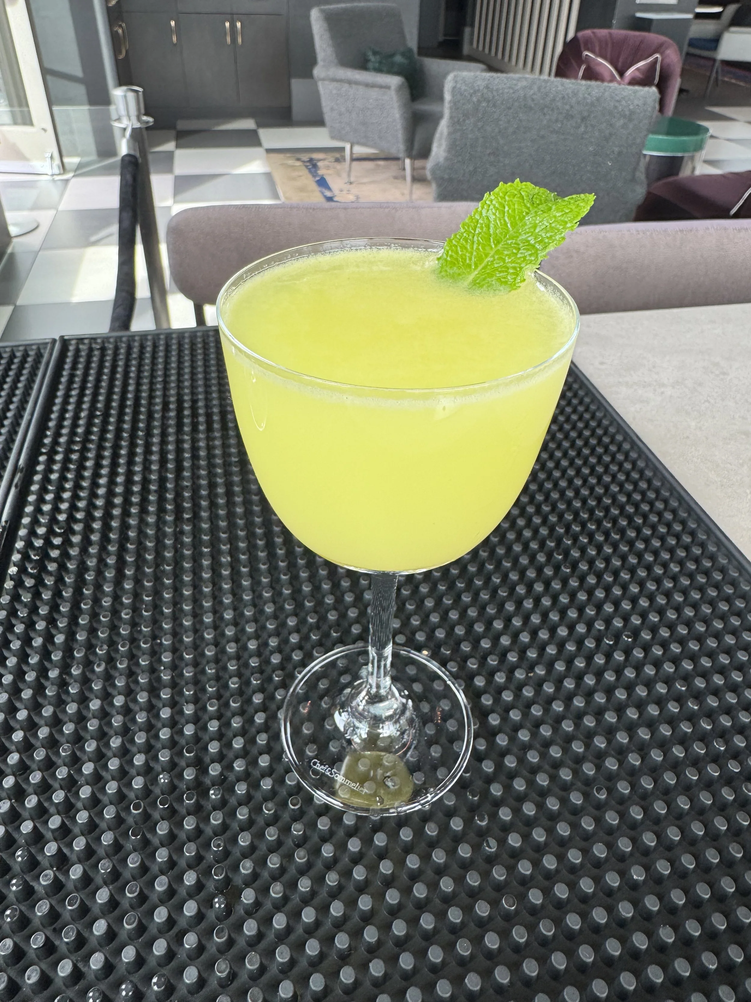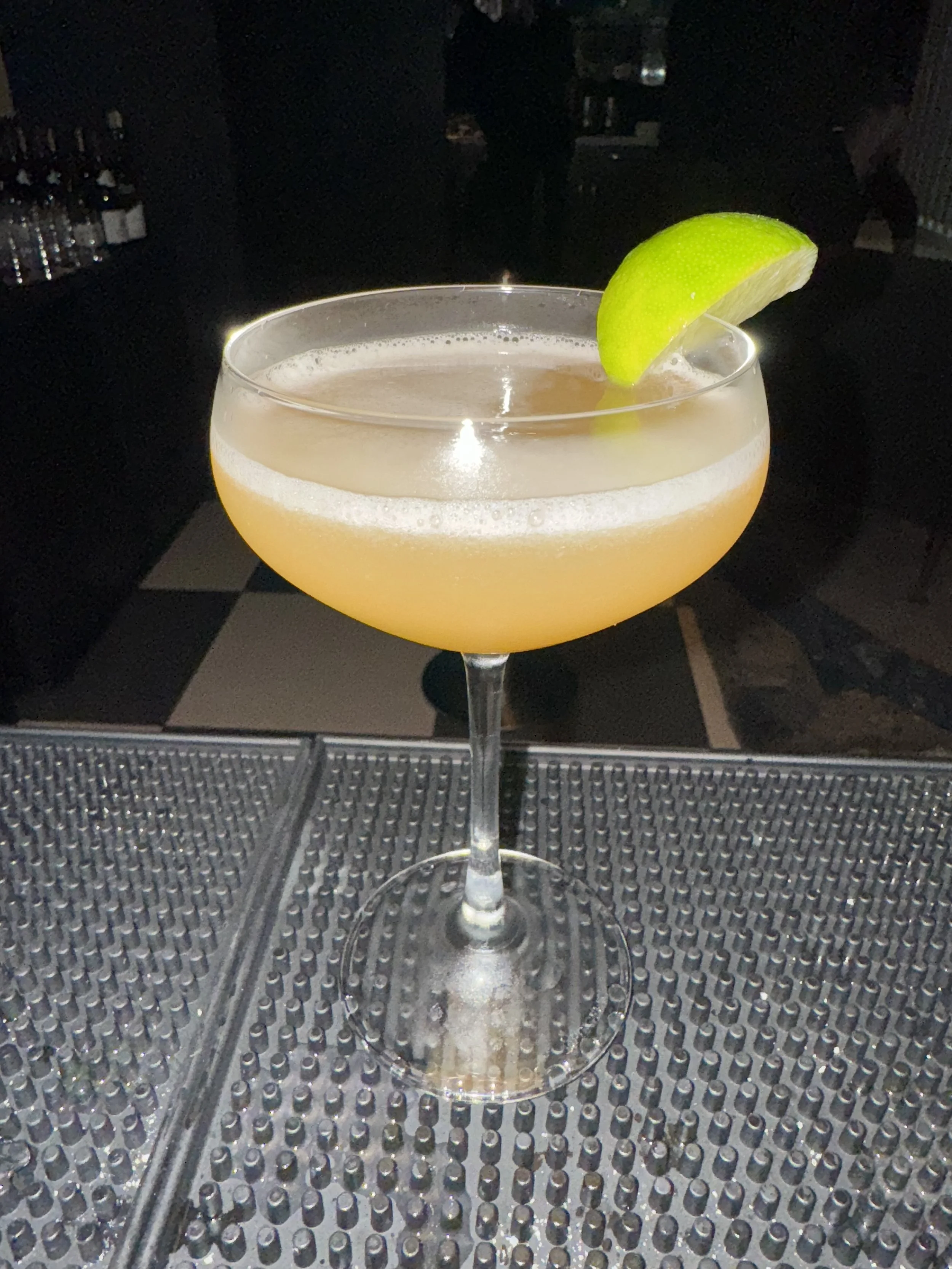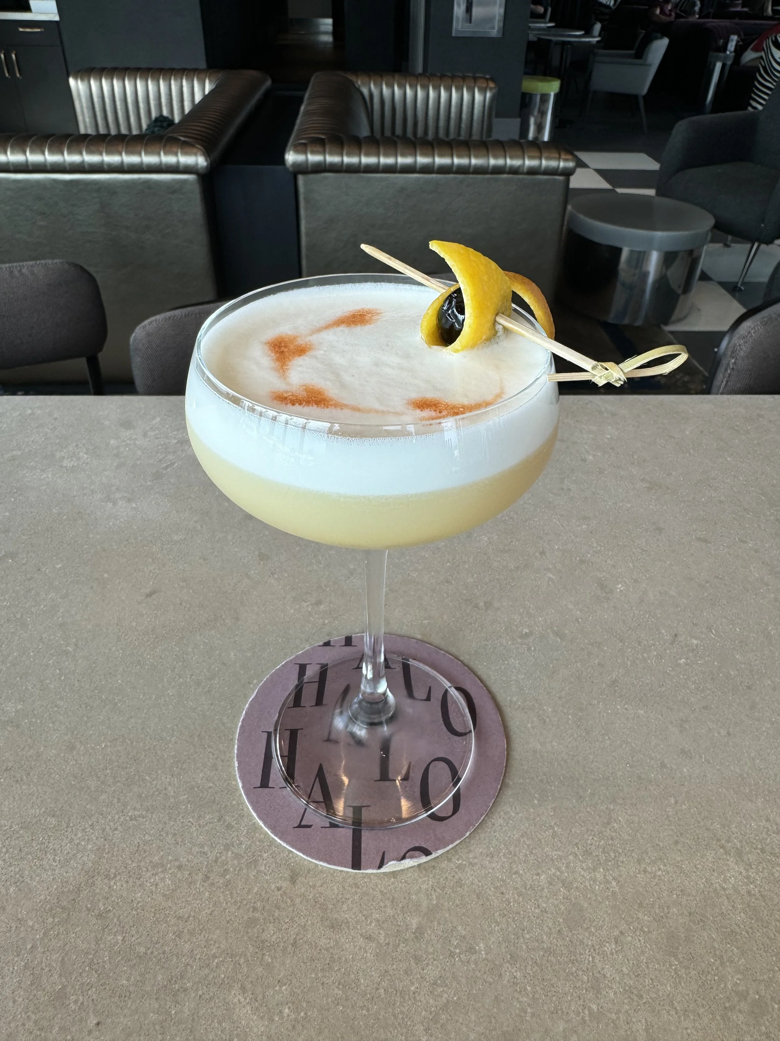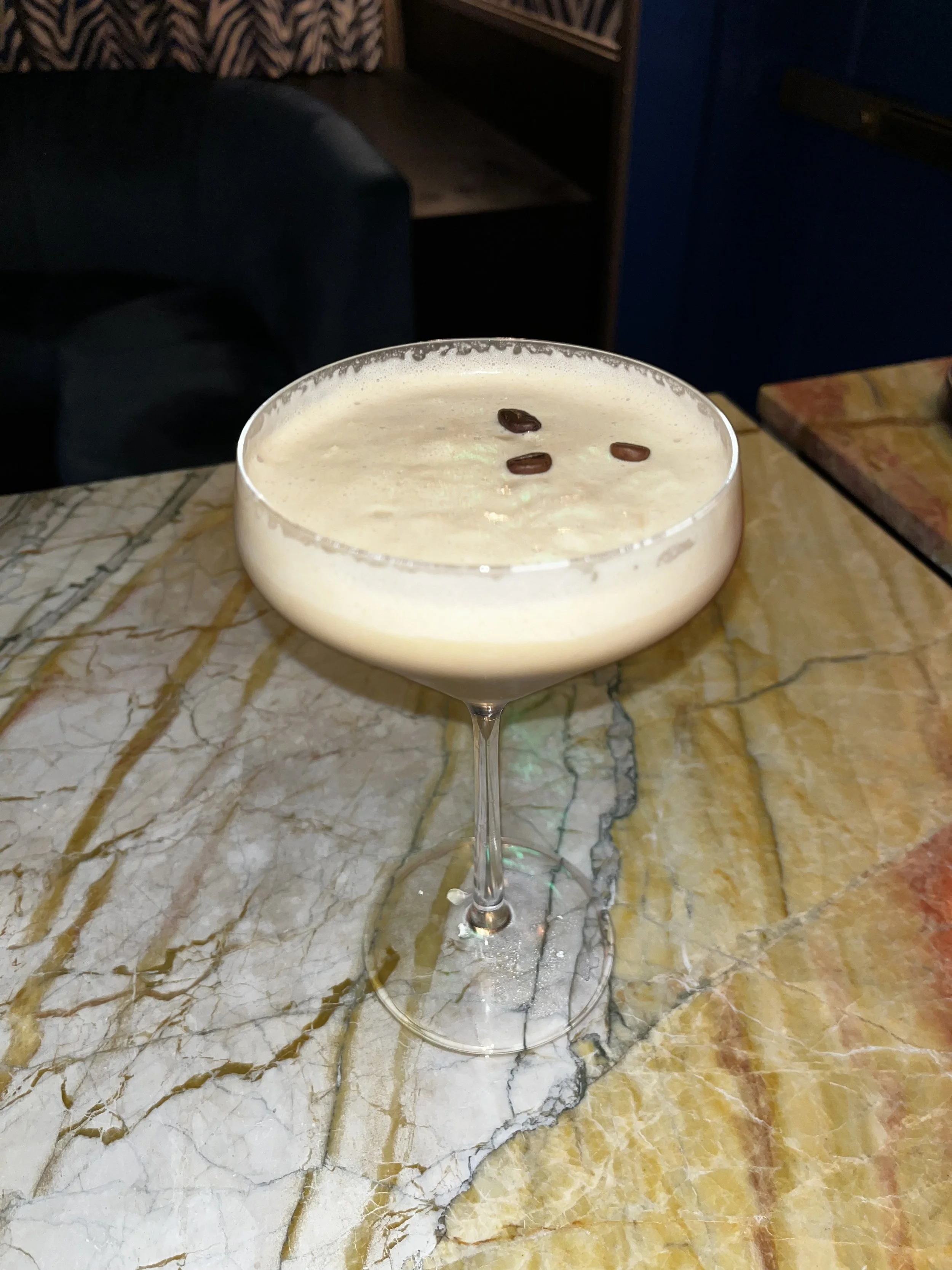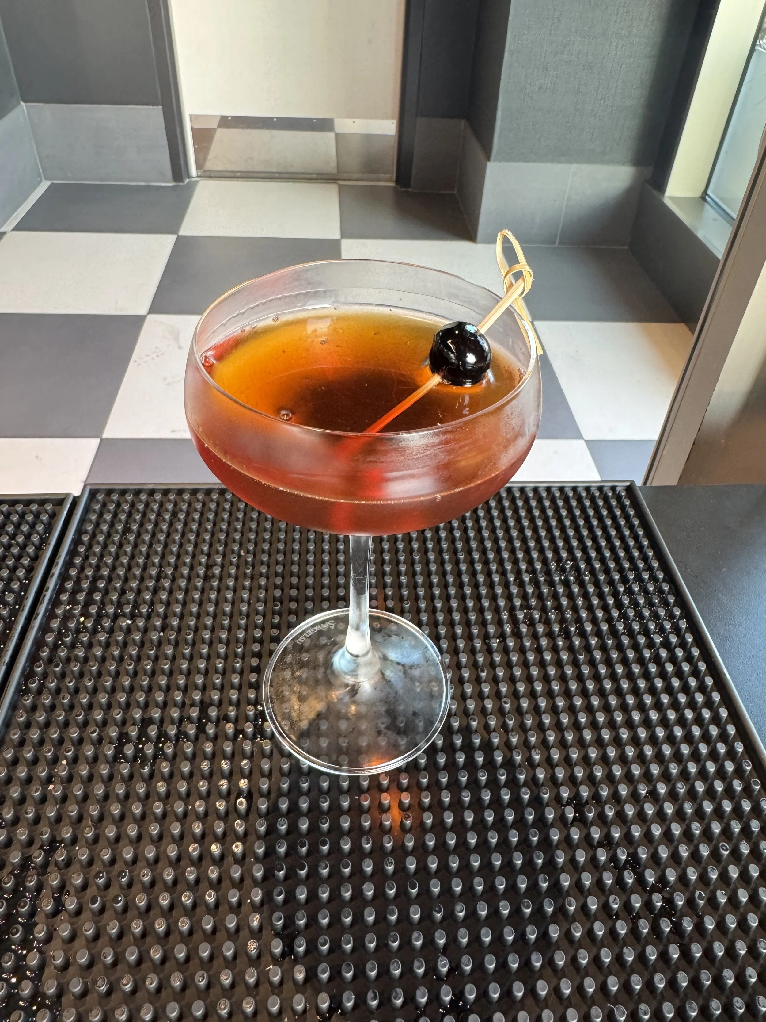Milk Punch Cranberry Martini w/ Rhubarb Caviar