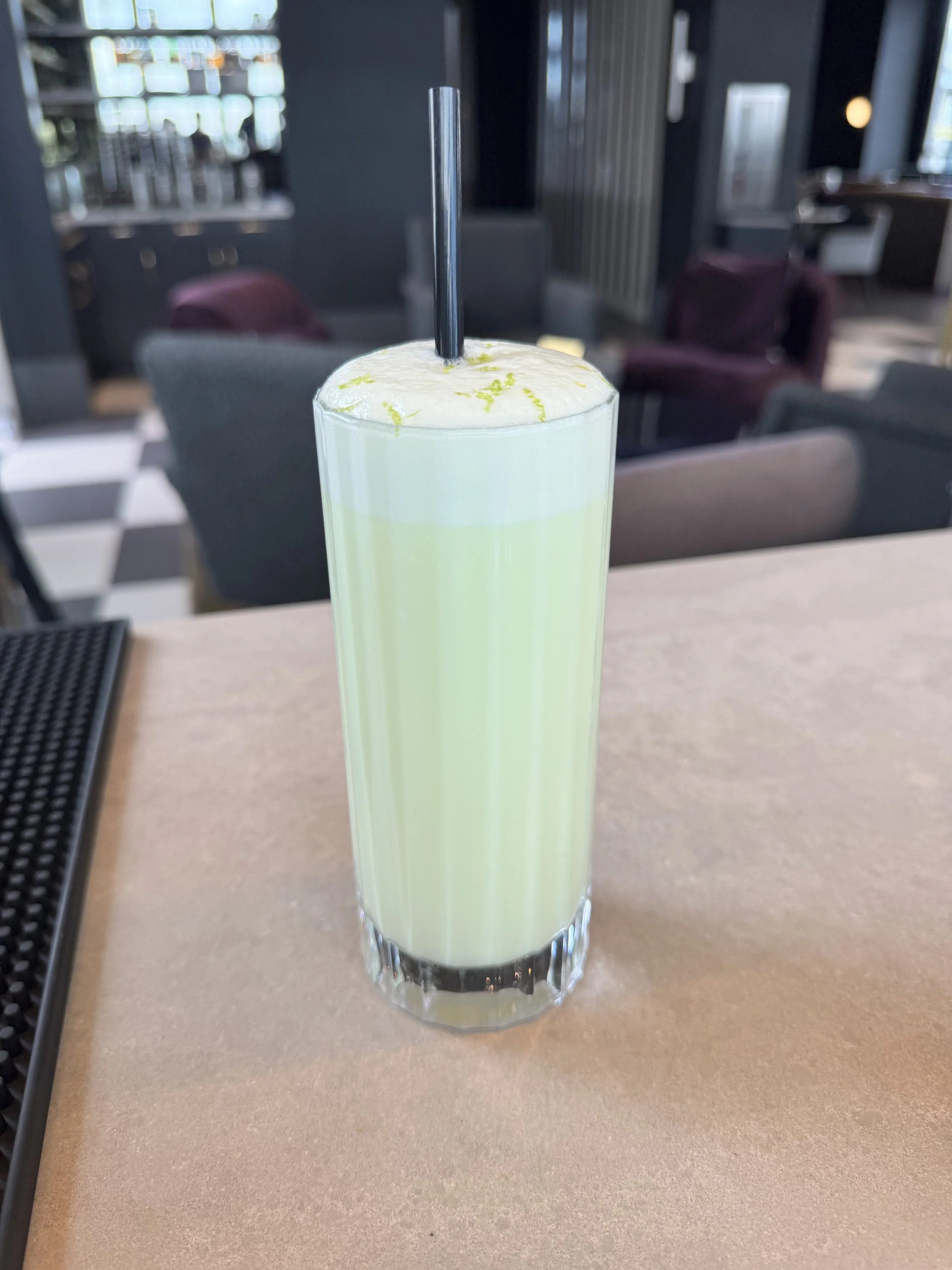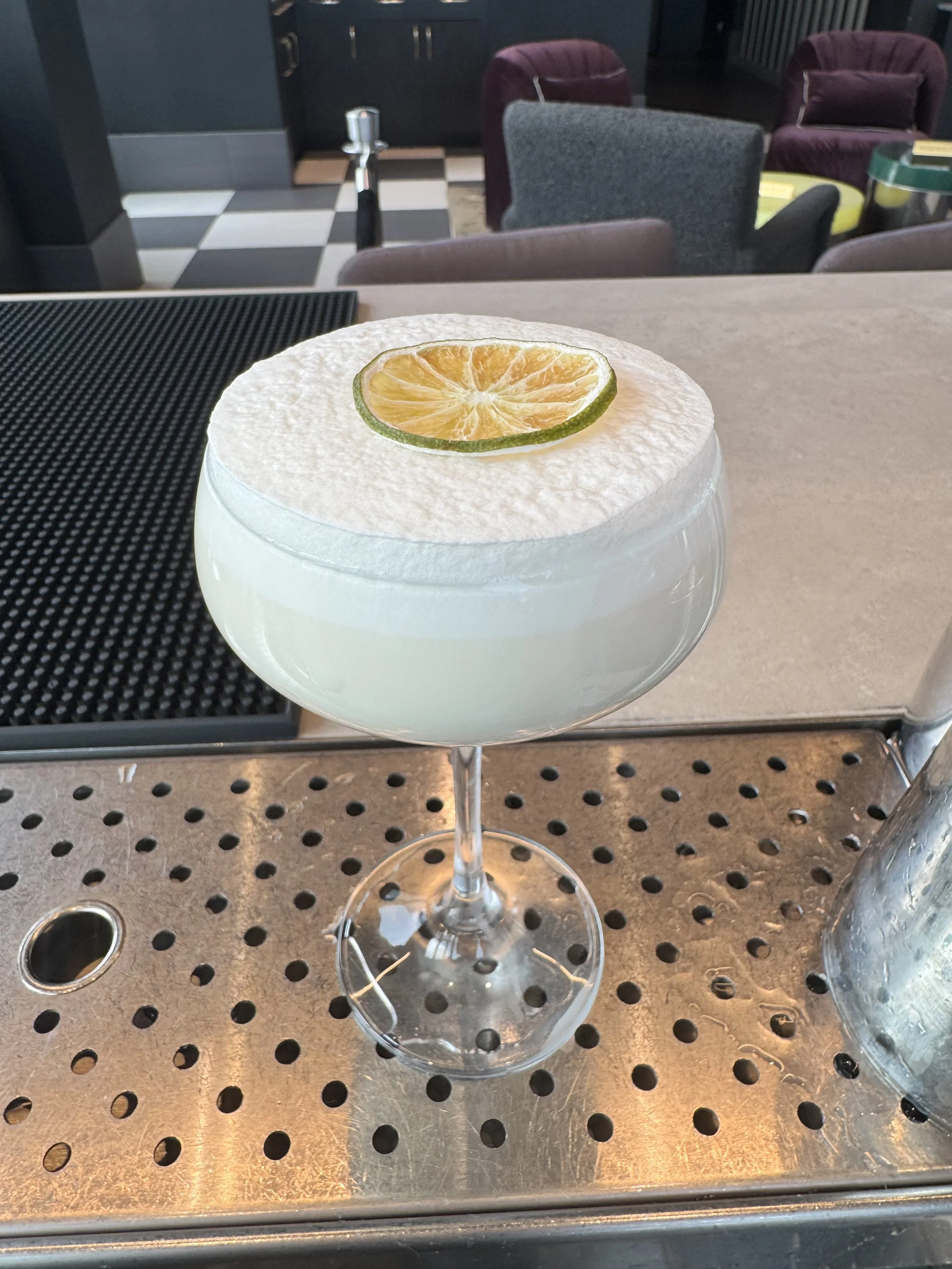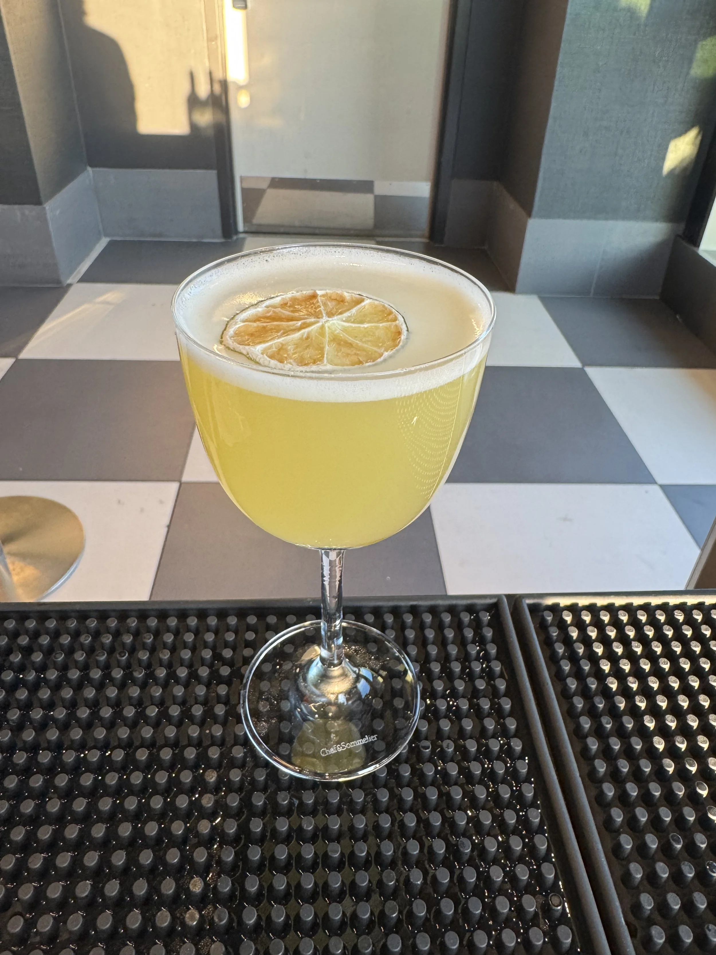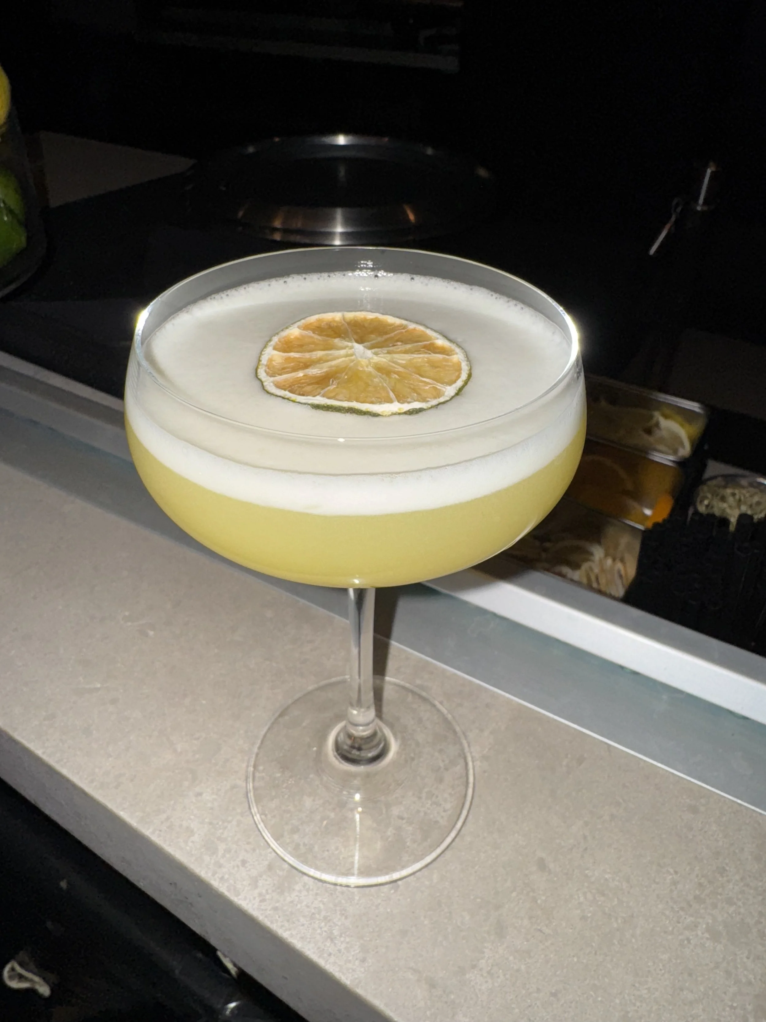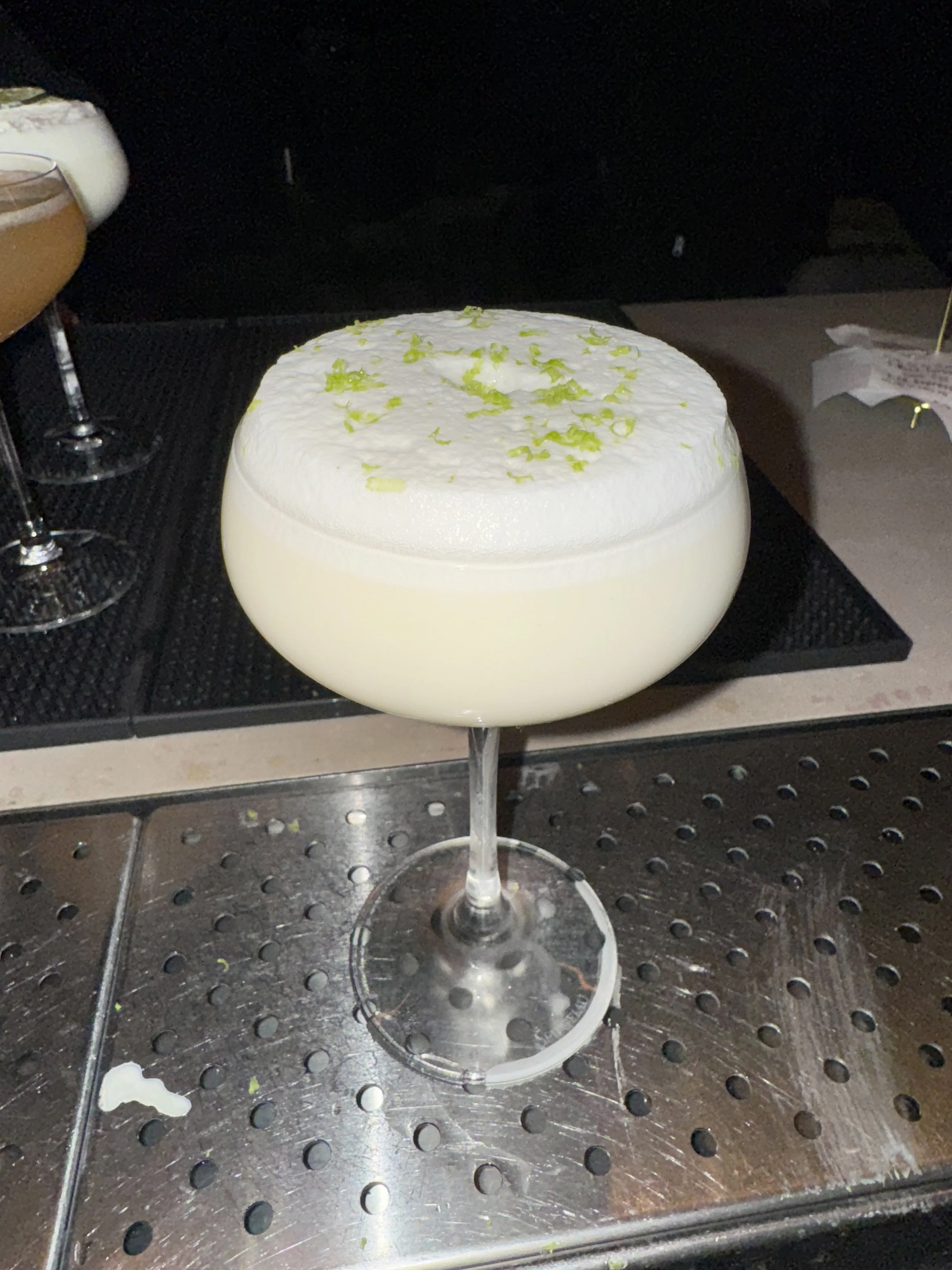 Milk Punch Cranberry Martini w/ Rhubarb Caviar